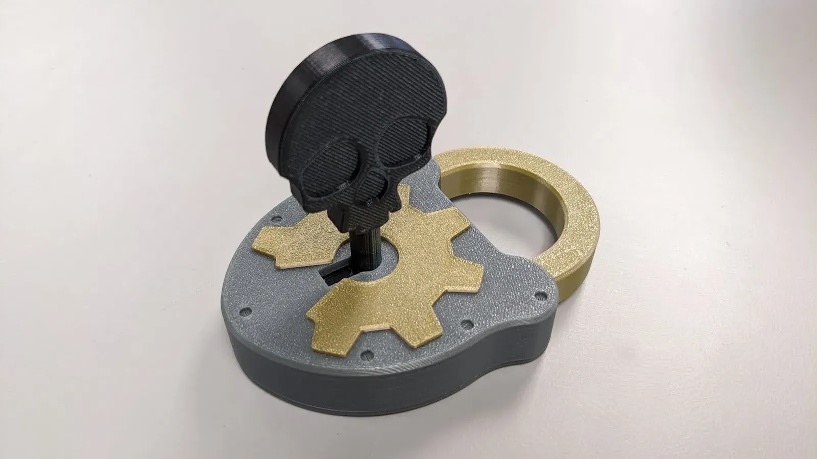 Đây là phiên bản đầu lâu của chìa khóa xương "Khóa padlock phân chức năng với chìa khóa xương, 100% có thể in, không cần phần cứng" của Muddymaker.