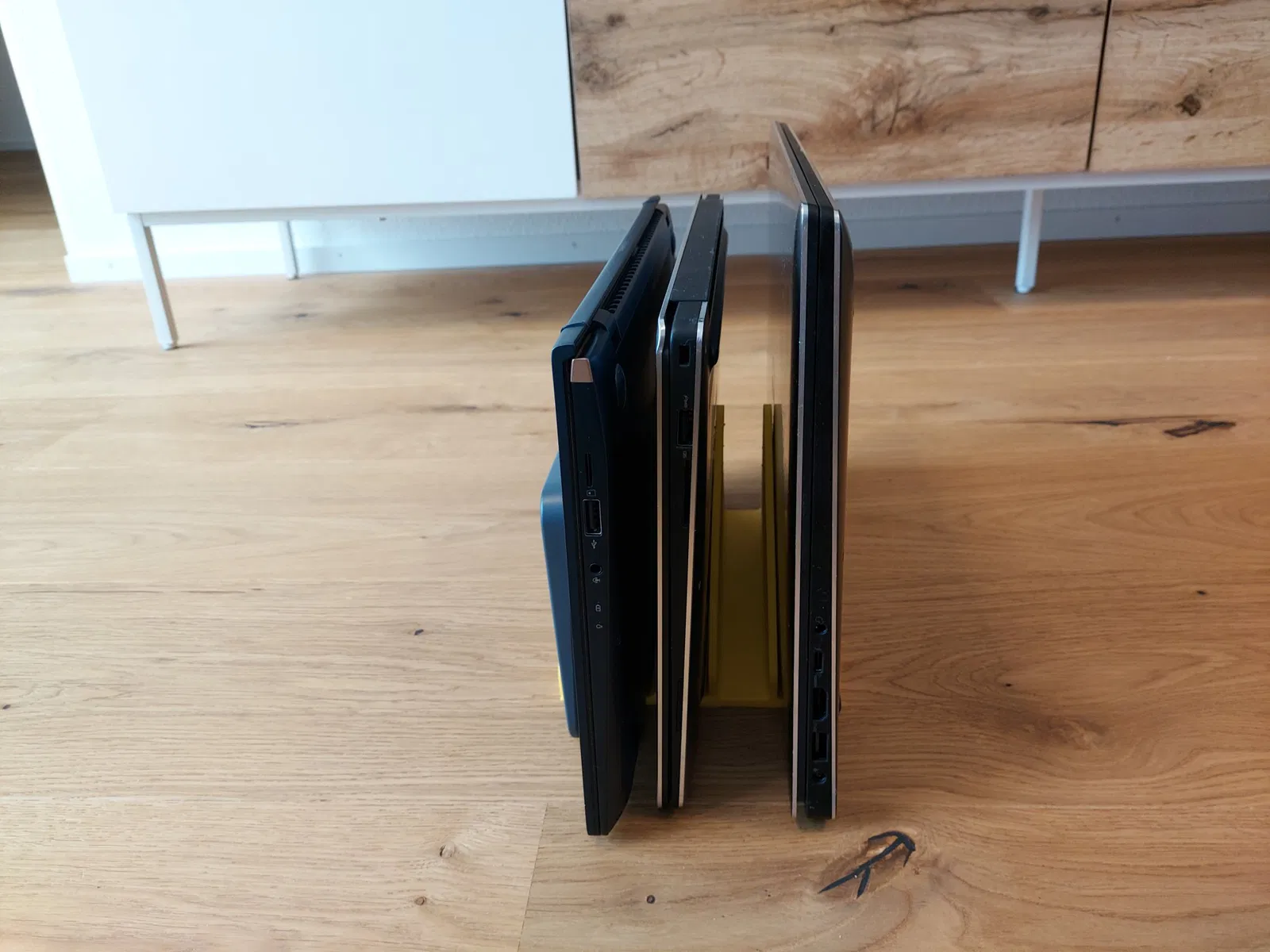 Một giá đỡ laptop với các khe cho các kích thước laptop khác nhau, dành cho bất kỳ ai có quá nhiều máy tính ở nhà.