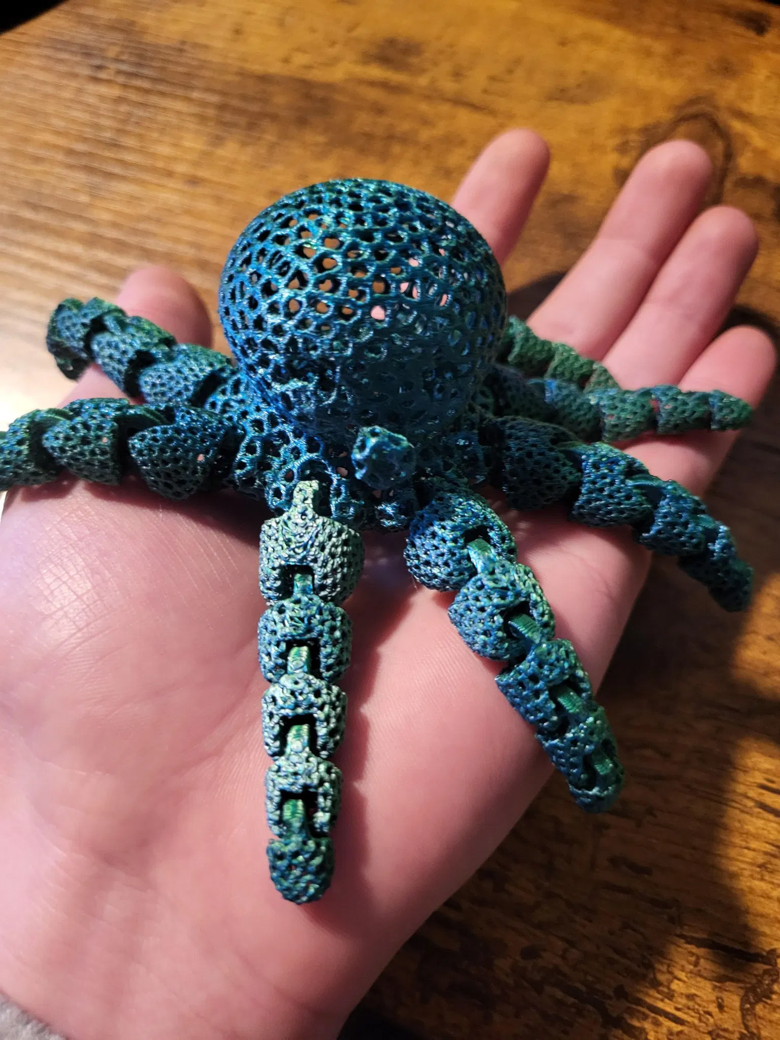 Đây là một mô hình remix của Bạch Tuộc Mini Dễ Thương với một chút phong cách Voronoi. Độ bền cấu trúc không mạnh mẽ như mô hình gốc, nhưng nó vẫn có thể chịu được một số va chạm. Mô hình mạnh nhất là mô hình thứ 3 (LỚN). Nó lớn hơn và hoàn toàn linh hoạt. Kích thước thứ 2 (TRUNG BÌNH) cũng hoàn toàn linh hoạt, nhưng bạn sẽ phải chơi với các chân để làm lỏng chúng. Cuối cùng, kích thước thứ 1 (NHỎ) là ít linh hoạt nhất. Kích thước thứ 1 (NHỎ) có thể giữ chân của nó ở vị trí, điều này rất tốt khi nó được đặt trên kệ hoặc trưng bày. Đừng in kích thước nhỏ cho tính linh hoạt và độ mượt mà.