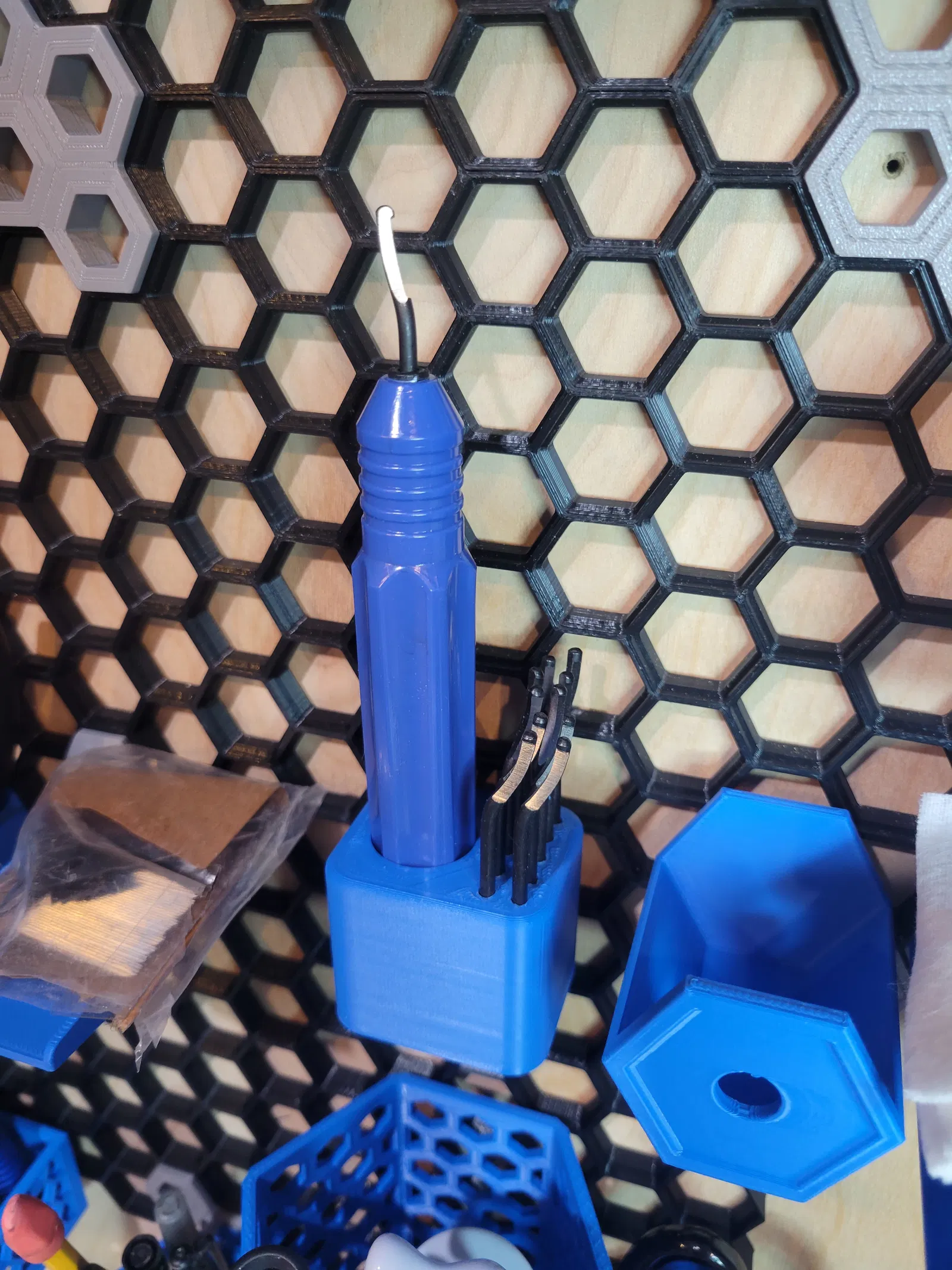 Người giữ công cụ Deburring với lưu trữ cho 10 lưỡi dao bổ sung.