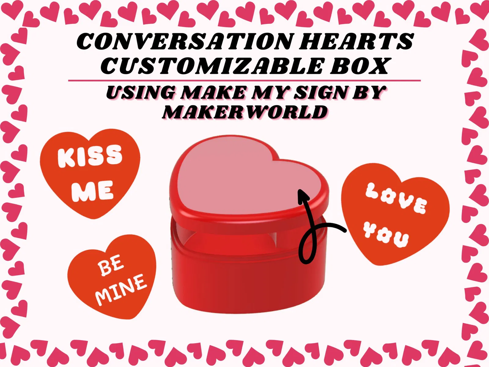 Giới thiệu Hộp Hình Trái Tim — một sản phẩm tuyệt vời và có thể tùy chỉnh, hoàn hảo để thể hiện cảm xúc của bạn theo cách độc đáo. Hộp hình trái tim được thiết kế đơn giản này có thể dễ dàng được in 3D mà không cần hỗ trợ, phục vụ như một chiếc bình duyên dáng cho những thông điệp chân thành, món quà nhỏ hoặc đồ ngọt của bạn. Cá nhân hóa sản phẩm của bạn với Make My Sign bằng cách khắc một thông điệp tùy chỉnh hoặc cụm từ đáng yêu trên nắp, thêm một lớp cảm xúc cho việc tặng quà của bạn. Hãy làm theo một vài bước tiếp theo để đảm bảo thông điệp tùy chỉnh của bạn vừa vặn hoàn hảo trên nắp hộp. Đầu tiên, hãy truy cập trang Make My Sign của Makerworld và bắt đầu từ đầu với hình trái tim và văn bản. Phông chữ trong hình là ‘’Mali'' nhưng ‘’Bloom'' hoặc ‘’LEFUN'' cũng sẽ rất tuyệt! Hãy chắc chắn rằng bạn thay đổi các cài đặt sau để có một sự vừa vặn hoàn hảo. Trong tab ‘’Plate'' : - Kích thước : 90 x 80 mm