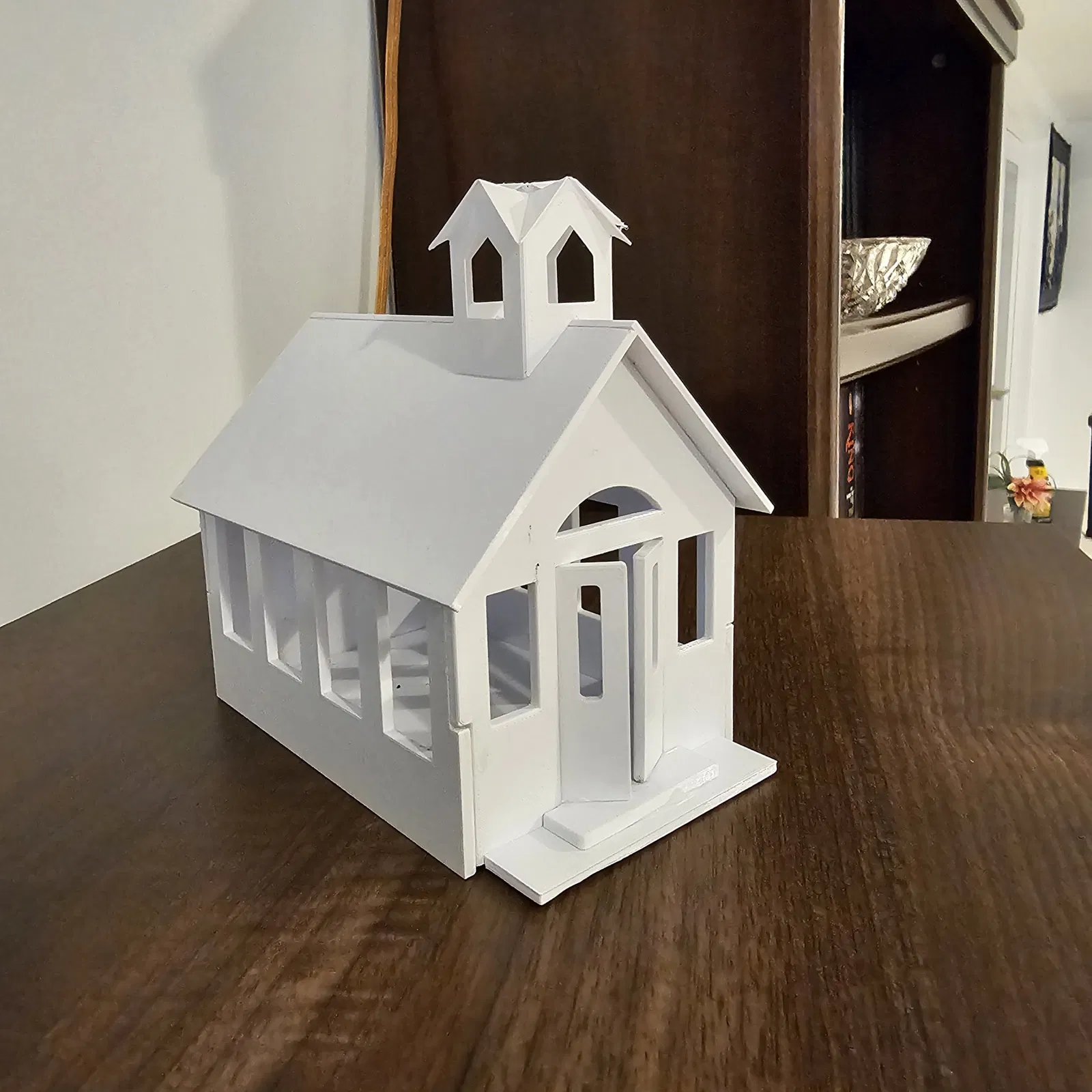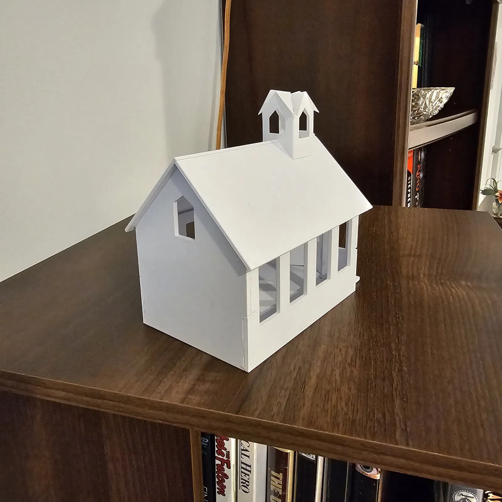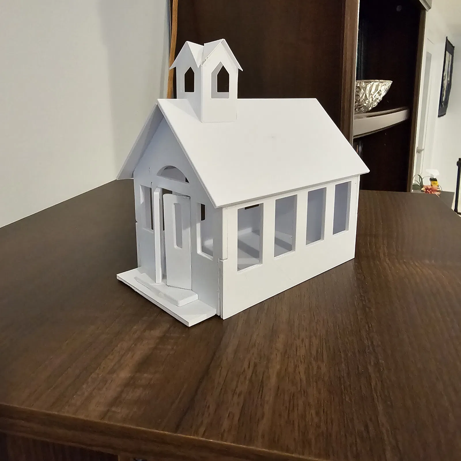Ngôi Trường là một trong 6 tòa nhà nhỏ được giới thiệu trong bộ Greenleaf Village dành cho một màn trình diễn Giáng sinh hoặc bố cục tàu hỏa. Cái mà tôi có từ khoảng 30 năm trước được làm từ ván ép dập (không phải cắt laser) và rất giòn, đã bị nứt ngay khi tôi cố gắng lấy các mảnh ra. Vì vậy, tôi quyết định thử tái tạo mô hình trên máy Prusa của mình. Đây là mảnh thứ hai tôi hoàn thành (xem thêm Nhà Xe cũng được đăng ở đây).