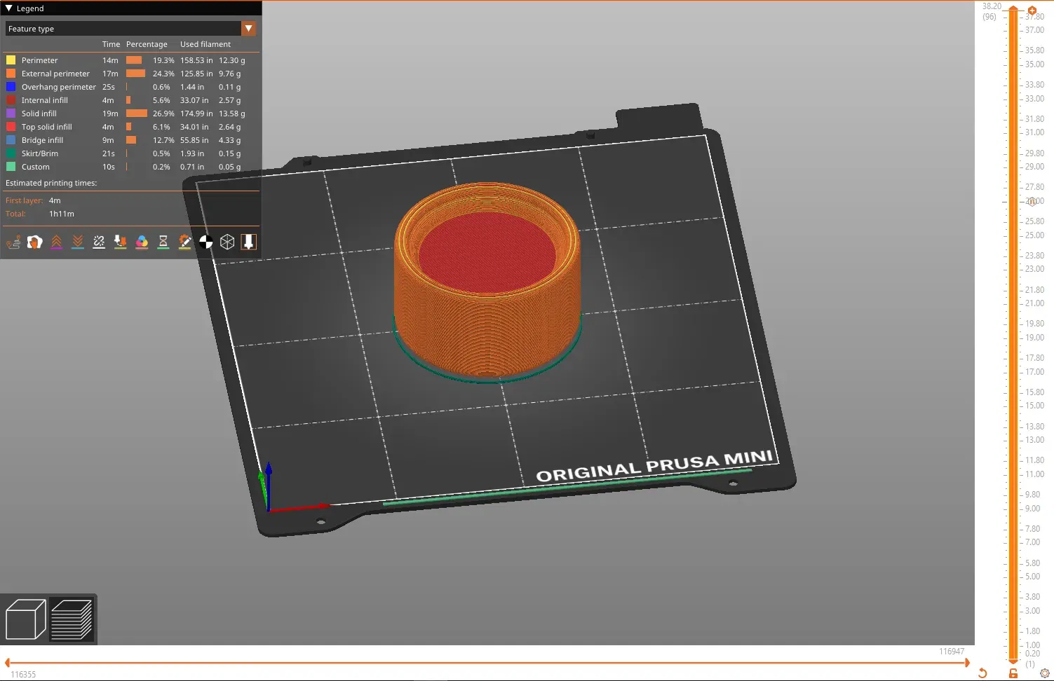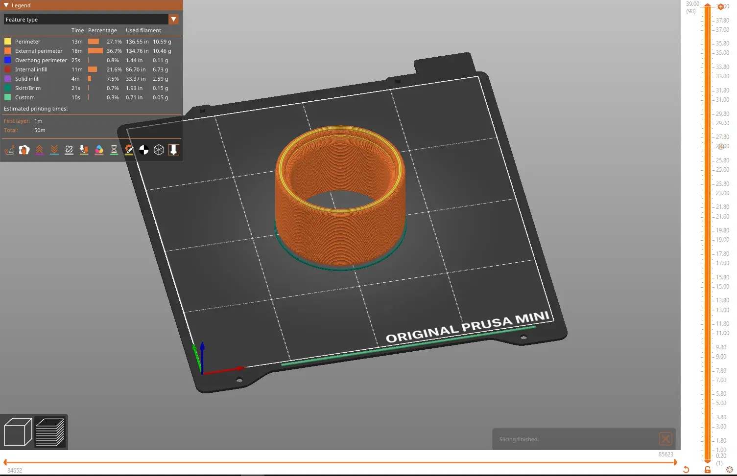 Mô hình “Yeti Spacer.stl” là rỗng, trong khi mô hình “Yeti Spacer (Additional Weight).stl” bao gồm một khoang bên trong có thể được lấp đầy bằng trọng lượng bằng cách tạm dừng in. Điều này được thiết kế để giữ trọng tâm của lon thấp hơn nhằm ngăn chặn việc đổ. Tôi đã sử dụng cát chơi để lấp đầy khoang này với kết quả rất tốt. Cả hai phần đều có thể được in mà không cần vật liệu hỗ trợ.