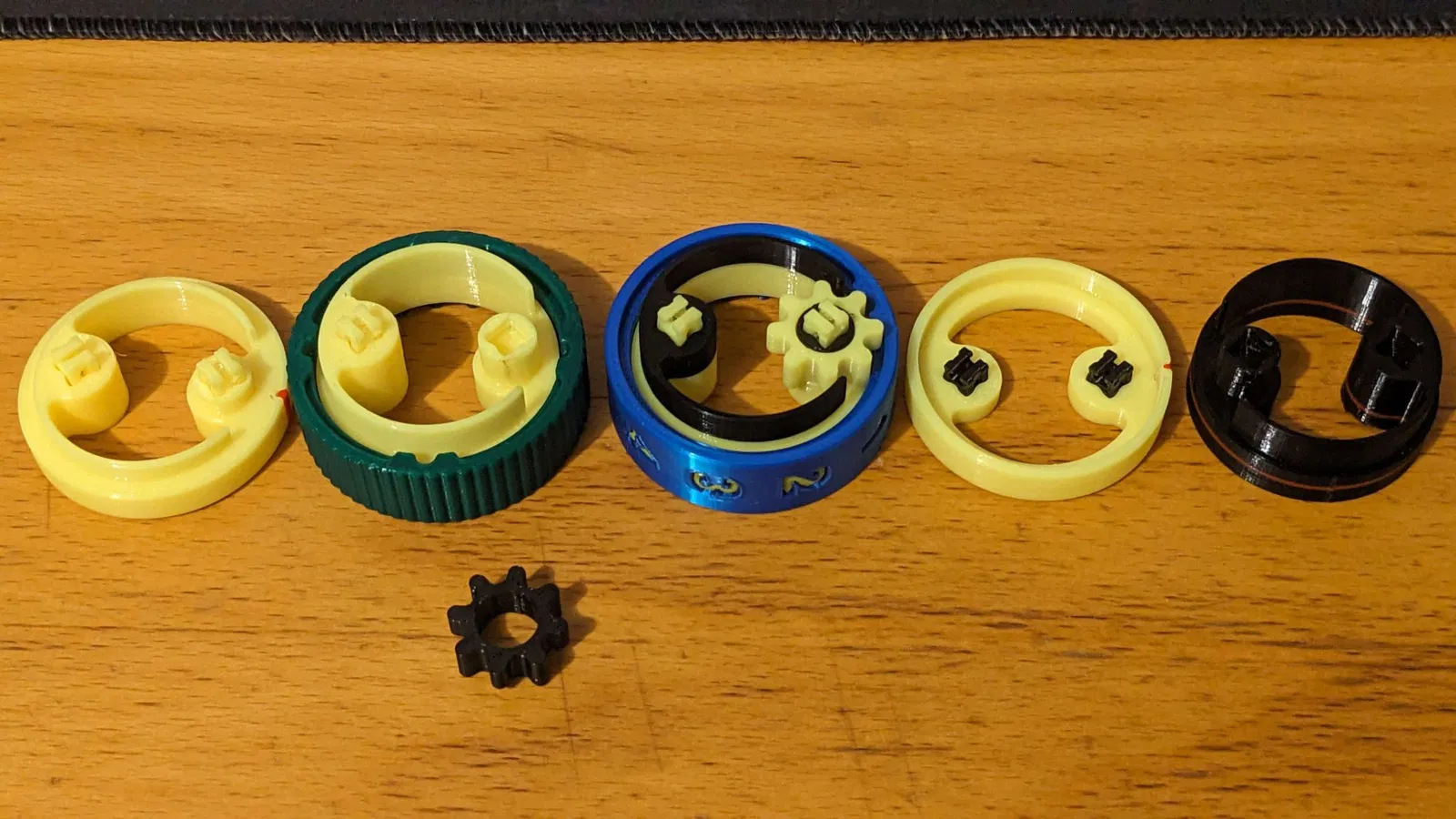 Một sửa đổi của Core, Start, End, Index Gear của bộ đếm cơ học của 3D PRINTY để sử dụng phương pháp đầu nối printablock.