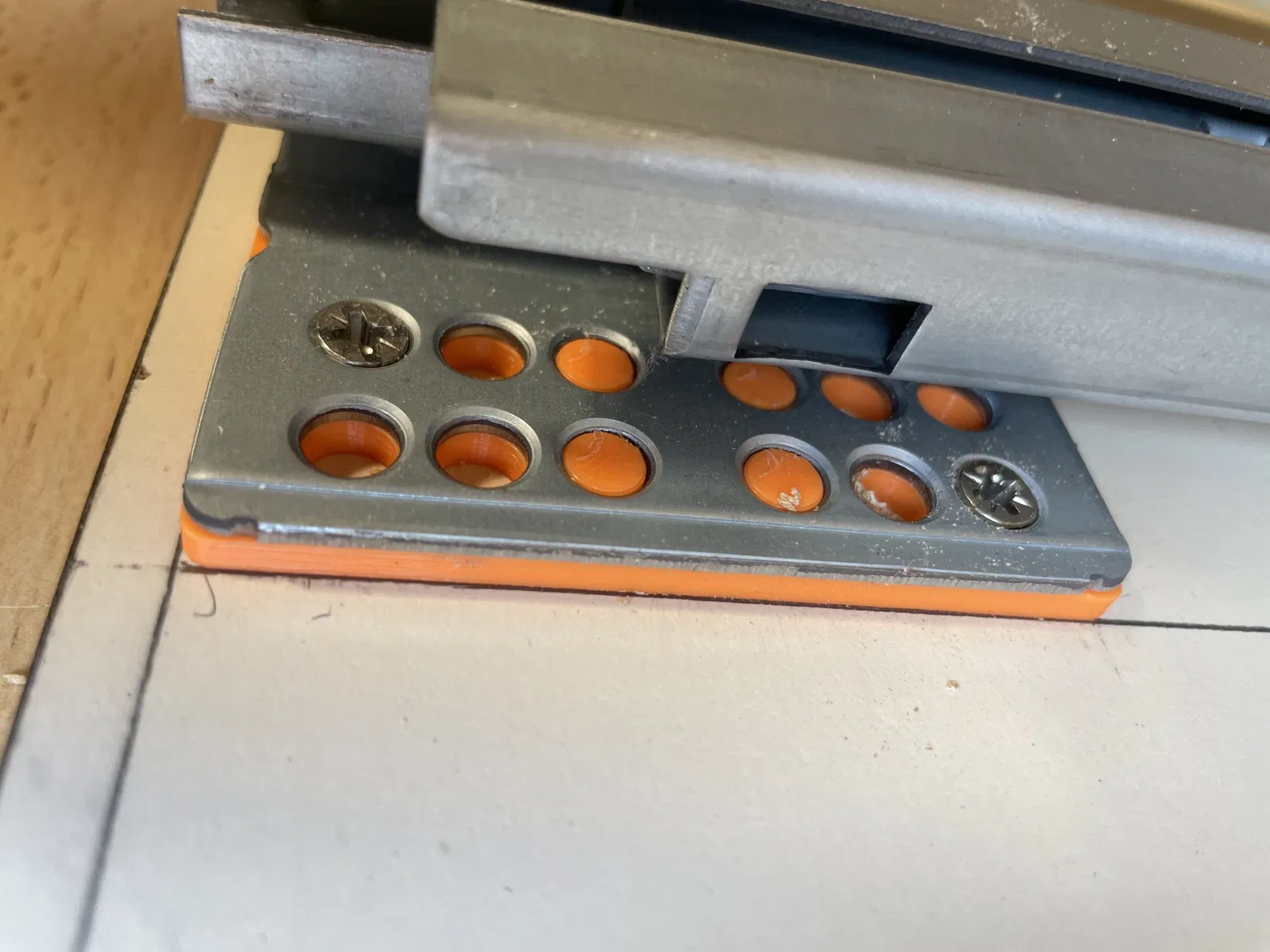 Vì vậy, tôi đã đo giá đỡ gắn ray và thiết kế một khoảng cách để kéo dài các ray thêm 3mm ở mỗi bên. Chúng hoạt động tốt và có thể được sử dụng với các vít đi kèm với các gói ngăn kéo. Rõ ràng sẽ hoạt động với các đơn vị ngăn kéo rộng hơn khác trong dòng sản phẩm này.