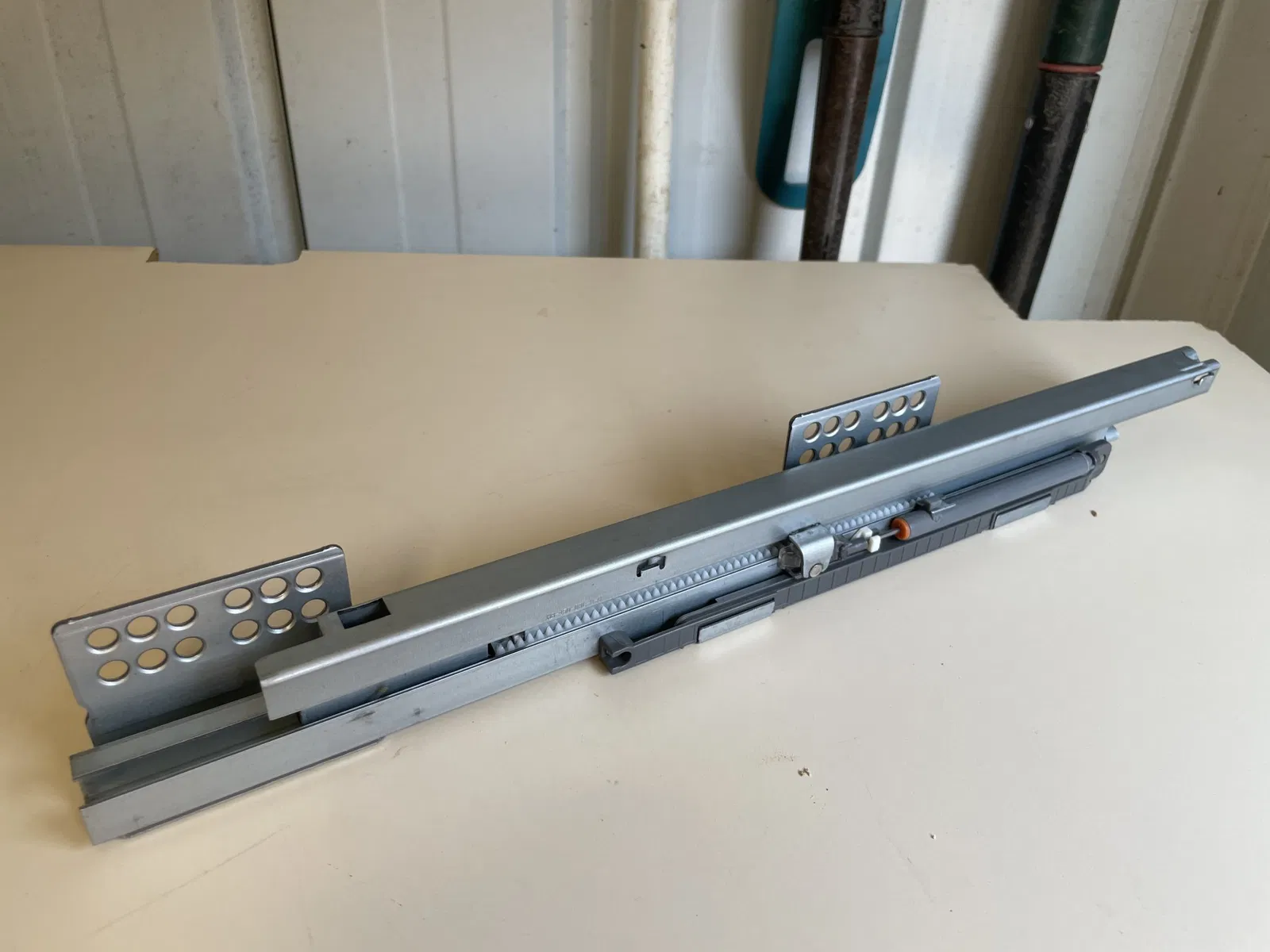 Tôi đã nhận được một vài đơn vị bếp cơ sở rộng 300mm từ con trai tôi (cho xưởng của tôi) khi anh ấy lắp đặt một căn bếp mới. Vì chúng không có ngăn kéo, tôi đã mua một số đơn vị ngăn kéo bếp từ B & Q (cửa hàng DIY/phần cứng ở Vương quốc Anh - Hộp ngăn kéo Soft-close GoodHome Soto). Tuy nhiên, các đơn vị ngăn kéo được thiết kế để vừa với một tủ rộng 300mm với tường vỏ dày 18mm - các đơn vị của tôi có tường vỏ dày 15mm.