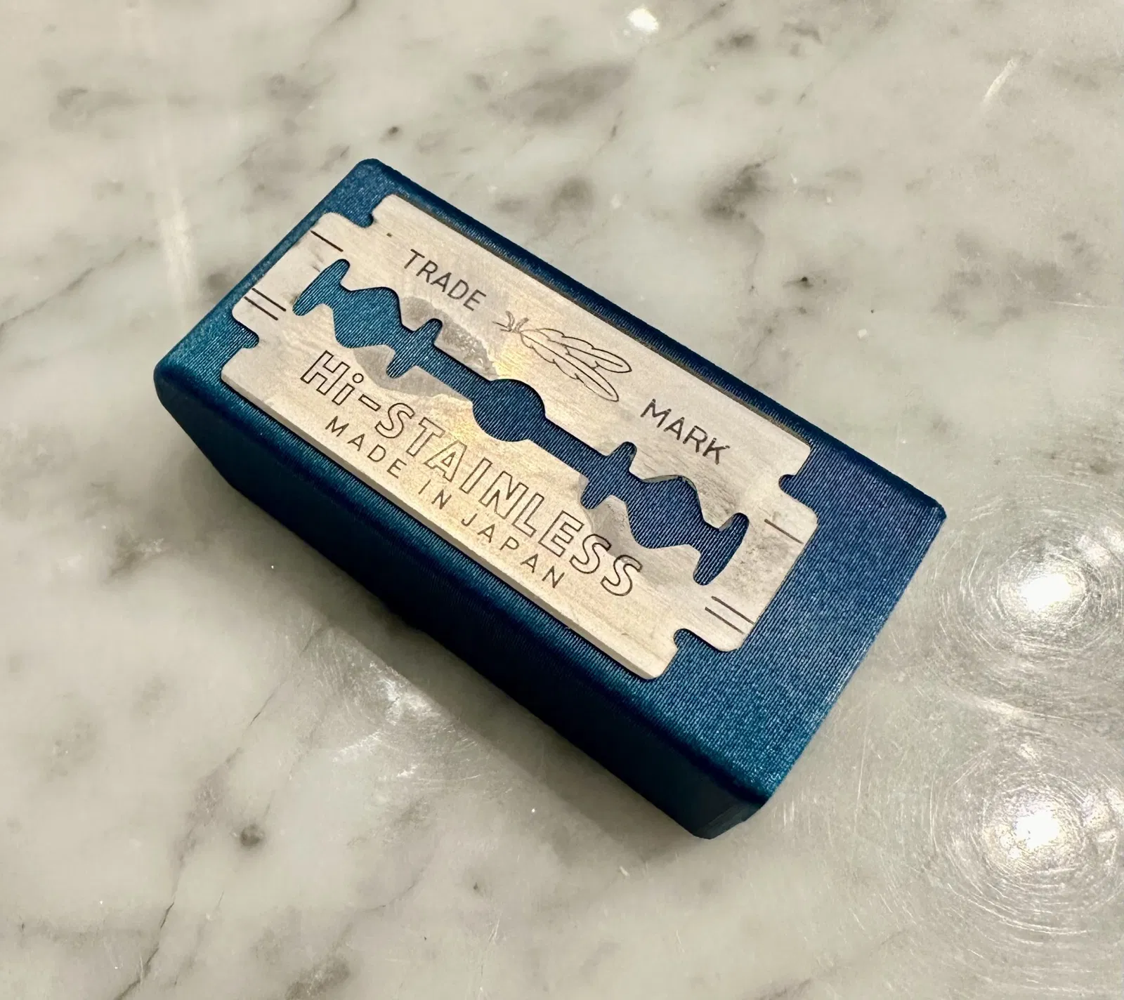 Hình dạng bên trong giữ cho các lưỡi không xoắn quanh và bị kẹt, điều này đã xảy ra với một số cái lớn hơn mà tôi đã thử. Chứa nhiều lưỡi, nhiều hơn tôi mong đợi, vì chúng rất mỏng và ngồi gọn gàng bên nhau trong cái hộp này. Khi đầy, toàn bộ có thể được vứt đi.