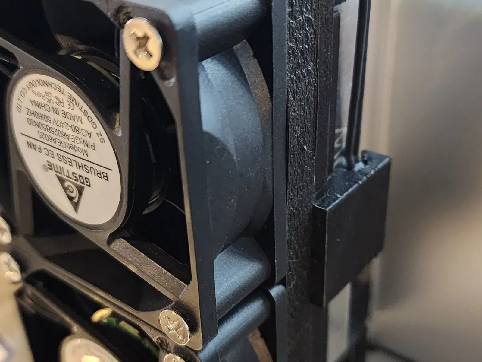 Bảng bên và góc có thể in được. Sử dụng vít M4x12 với các chèn. Các lỗ ở các góc đủ tốt để bạn không cần chèn. Bạn có thể sử dụng đai ốc và bu lông M4 để gắn các bảng lại với nhau. Bạn cần 6 bảng ngắn, 2 bảng dài, 4 góc cũng như phần giữa phía sau để tạo thành một bộ đầy đủ với quạt. Hoặc, nếu bạn không muốn có vỏ, bạn cần 4 bảng ngắn, 4 bảng dài và 4 góc. Sử dụng nam châm theo thiết kế mũ cao gốc và sử dụng nắp nhôm từ nhà máy.