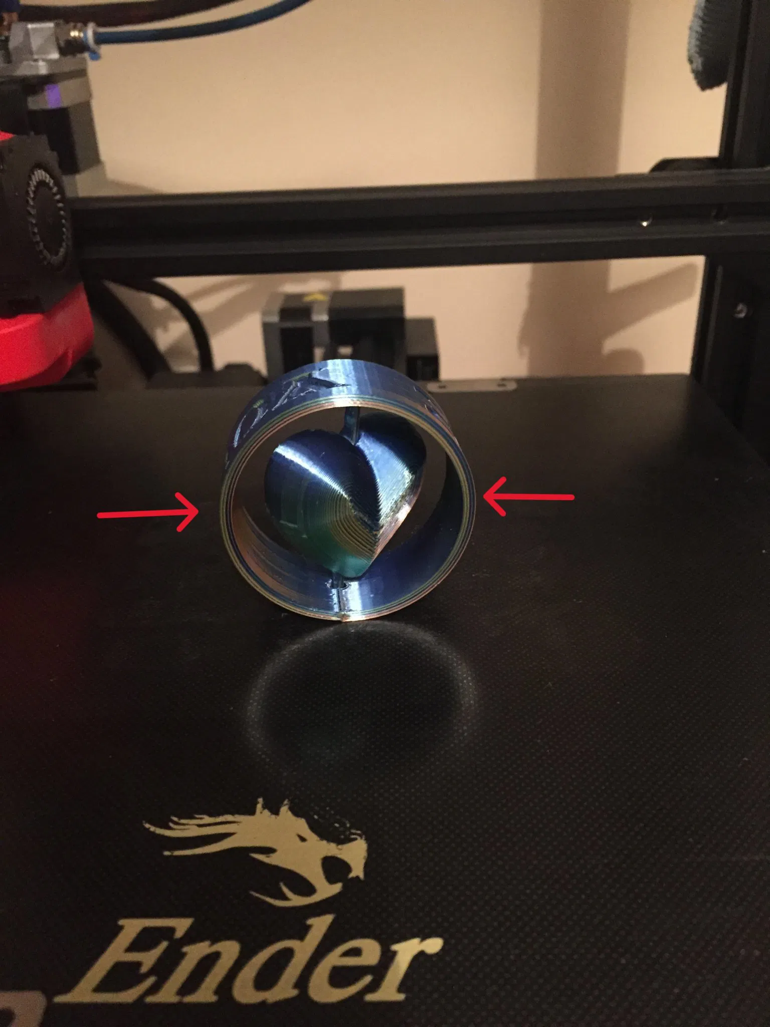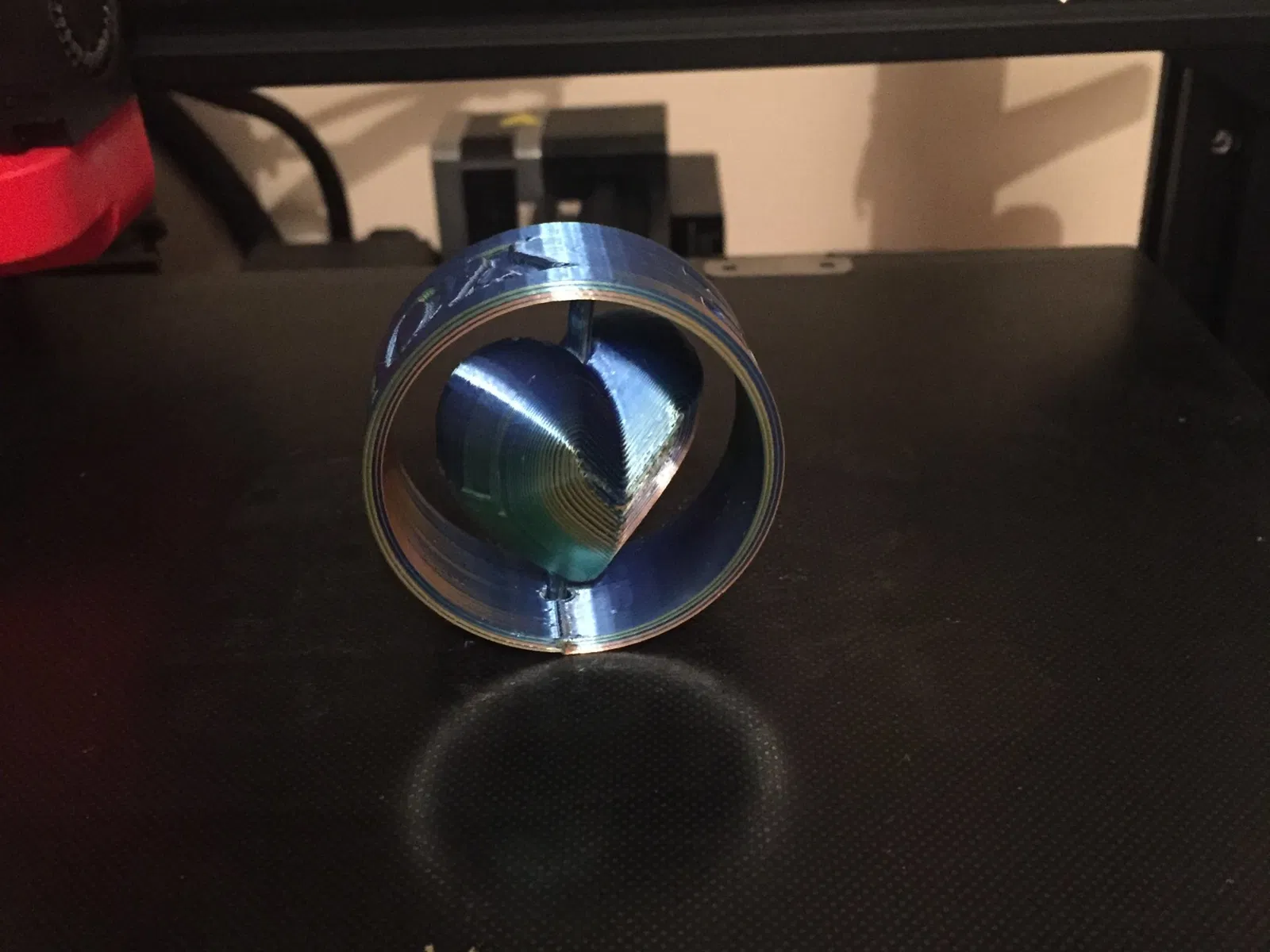 trái tim xoay có thể được in tại chỗ mà không cần hỗ trợ, sau khi in từ từ di chuyển trái tim qua lại cho đến khi nó xoay tự do rồi ấn các cạnh như trong hình sau đó trái tim có thể được gỡ ra để mài các đầu để nó xoay nhanh hơn. Tôi đã thêm một tệp chỉ cho trái tim để nó có thể được in với màu khác nhưng sẽ cần hỗ trợ cho trục