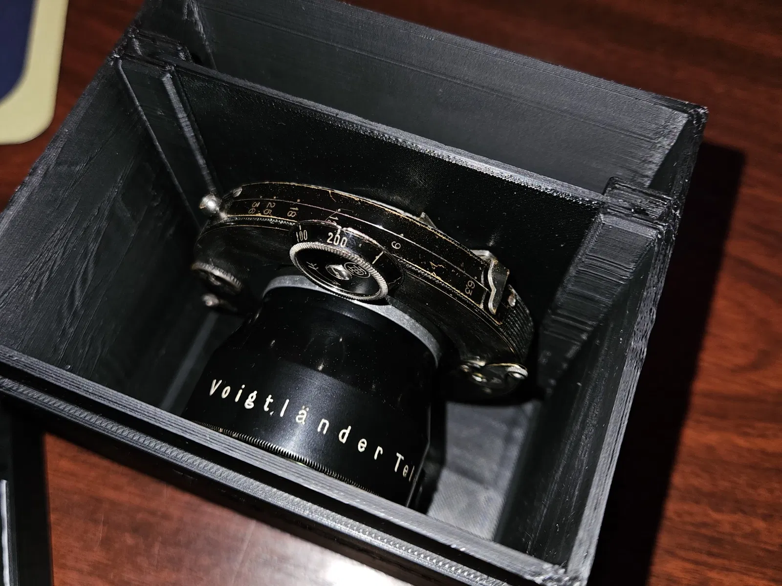 Hộp 90x90x110mm cho định dạng lớn Voigtlander Tele -Dynar 29 cm f/6.3 - Compur Shutter Hộp có bảng ống kính 2 mm.