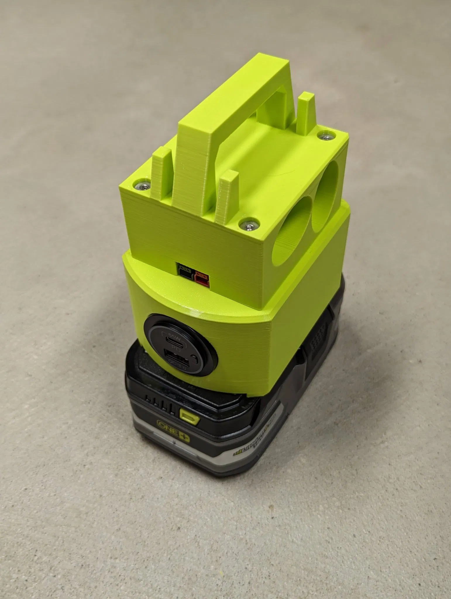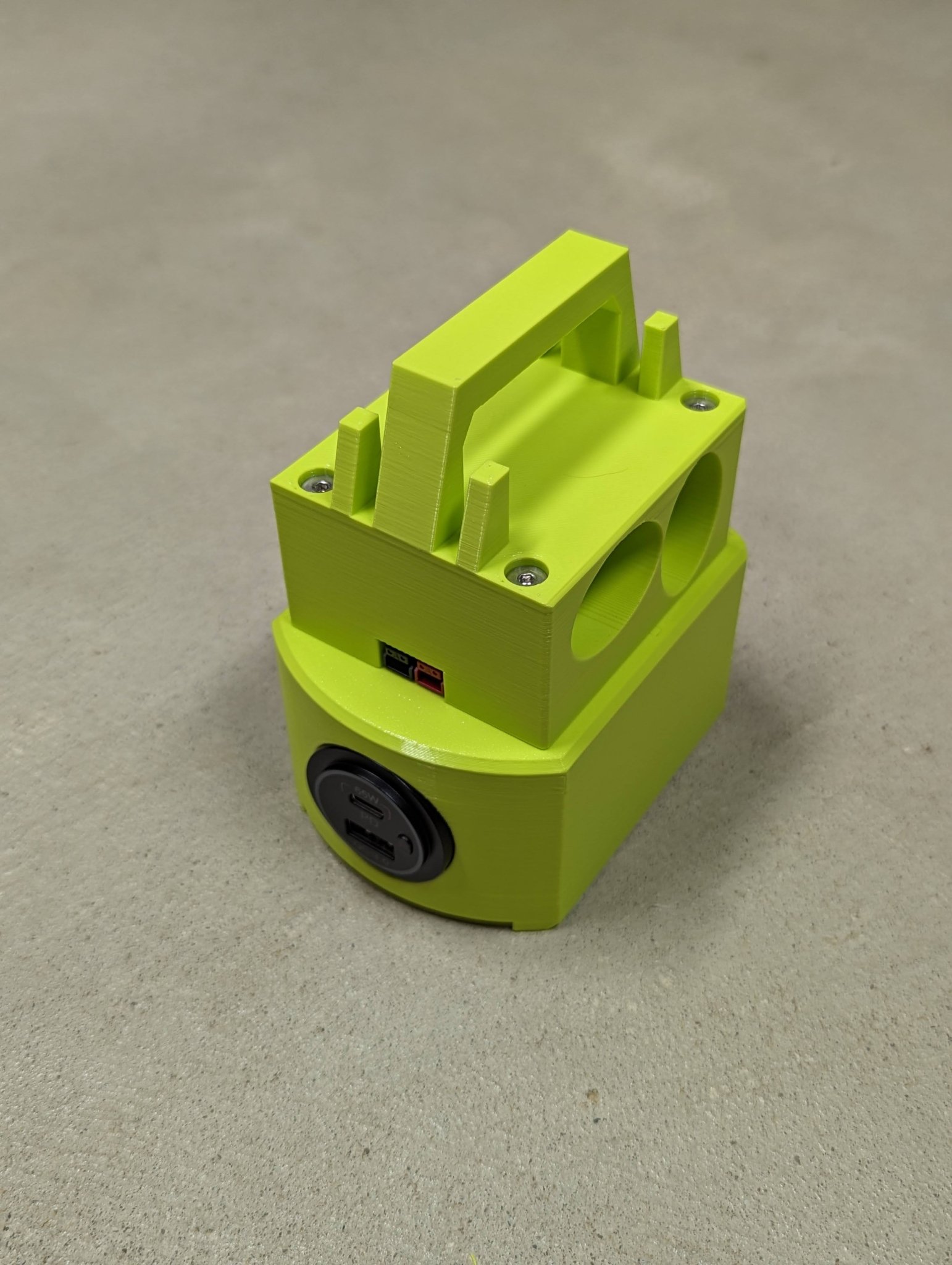 Cập nhật 05/22/2025 GHI CHÚ: Có một phiên bản khác của bộ chuyển đổi này, trước khi bạn in điều này, hãy kiểm tra… https://www.f3d.vn/3d-model/124995-sac-usb-c-65w-tuong-thich-voi-dual-ryobi-18v Bộ chuyển đổi in được này cho phép một viên pin Ryobi 18v cung cấp/nạp năng lượng cho điện thoại, laptop hoặc thiết bị USB-C/USB. Sử dụng pin 4Ah hoặc lớn hơn là được khuyến nghị. Cài đặt in được đề xuất: - 0.20mm CHẤT LƯỢNG - Prusament PETG (hình ảnh sử dụng OVERTURE PETG Grass Green) - Mật độ in 20% - Mẫu in Hình khối - 3 Viền - Cần hỗ trợ Lắp ráp bằng cách in… Số lượng 1 của Ryobi18v đến 65wUSBC Số lượng 1 của Ryobi18v đến 65wUSBC nắp …không cần keo khi cũng in với tay cầm, chỉ cần kẹp cái này ở giữa Số lượng 1 của Ryobi18v đến 65wUSBC tay cầm …cần Số lượng 4 của M4*12mm (0.7) vít đầu nắp …hoặc… Số lượng 1 của Ryobi18v đến 65wUSBC tay cầm lưu trữ PP …cần Số lượng 4 của M4*45mm (0.7) vít đầu phẳng lục giác Hàn dây vào các tiếp điểm pin lò xo ở khoảng góc 45 độ, xem hình ảnh thứ hai từ cuối để biết chiều dài dây, cho phép tất cả các kết nối đã hàn nguội TRƯỚC KHI chèn vào!!! Xem hình ảnh cuối cùng để biết cách các tiếp điểm pin lò xo được gắn vào. Chèn Cổng USB-C PD3.0 65W và 18W QC3.0 Multi Car 12V Socket Waterproof với Công tắc Nguồn vào lỗ lớn, nhưng không đẩy vào hết, để nó nhô ra khoảng 2cm để dễ dàng gắn dây vào phía sau. Sử dụng kìm để đẩy Các đầu nối nhanh nữ (mà bạn đã hàn vào đầu dây) vào ổ cắm USB-C (chú ý đến cực tính!) sau đó đẩy ổ cắm USB-C vào trong hoàn toàn. Vặn tay cầm lại với nhau một cách thủ công/chậm rãi để tránh làm chảy nhựa. Đây là đèn USB stick được thấy trong các bức ảnh. Lưu ý an toàn: Cổng PowerPole được thiết kế cho đầu ra từ 20 đến 18V từ bộ pin, điều này có thể được sử dụng để chạy các tải khác. Cảnh báo: Cổng PowerPole có thể được sử dụng như một đầu vào (12 đến 24V chấp nhận) để cấp điện chỉ cho bộ sạc USB-C - NHƯNG CHỈ KHI KHÔNG CÓ PIN nào được cắm vào bộ chuyển đổi. Đừng cố gắng sạc pin trong bộ chuyển đổi này, hãy sạc trong các bộ sạc đã được phê duyệt. Hệ thống quản lý pin (BMS) được tích hợp trong tất cả các pin Ryobi 18v sẽ cung cấp một ngắt điện an toàn với điện áp thấp. Việc sử dụng bộ chuyển đổi này là an toàn khi các hướng dẫn này được tuân theo, nhưng bất kỳ việc sử dụng nào đều do bạn tự chịu rủi ro. Đừng để pin không có người trông, dưới ánh nắng trực tiếp, hoặc ở gần lửa trại/bếp nấu ăn/lửa mở, máy sưởi không gian, hoặc nước. Nếu bạn cần các tệp STL của các bộ phận này, vui lòng xem: https://www.printables.com/model/1303958 Chưa có máy in 3D? Không sao, hãy đặt hàng đã in từ… https://jpelectron.etsy.com