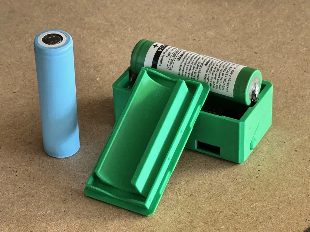 Chúng tôi đã sử dụng một pin 18650, được chọn vì khả năng cao (lên đến 3000 mAh) và tính khả dụng của nó. Bộ sạc này có thể cung cấp năng lượng cho điện thoại thông minh và máy tính xách tay, nhờ vào mạch điện tử chuyên dụng hỗ trợ USB PD (Power Delivery).