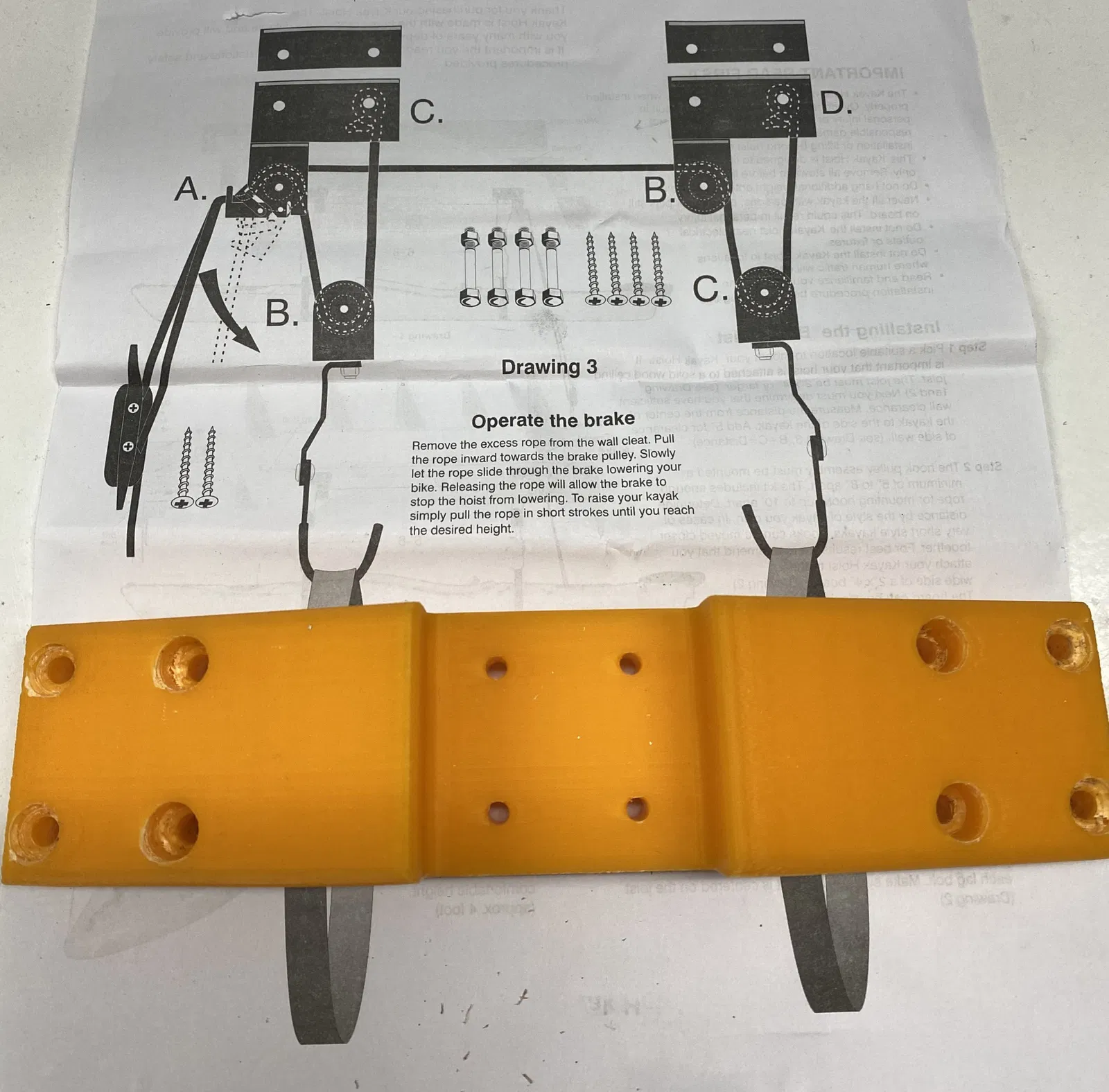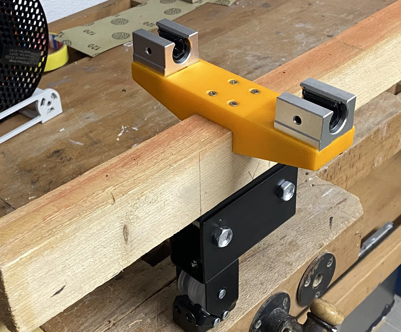 Sửa đổi 22-tháng 1-2024: Đã có một vài cái chặn (end stops). Cái này để chống va đập mạnh của thanh ray vào điểm dừng: https://www.f3d.vn/3d-model/125231-giam-chan-cho-ray-tuyen-tinh-tpu Tôi cần cái gì đó để vệ sinh, kiểm tra, sửa xe đạp của mình. Giá treo không tiện lắm, bạn phải tự tay nâng chiếc xe nặng 25kg lên. Thế là tôi mua một cái (móc) nâng xe đạp và thanh ray tuyến tính giá rẻ. Thiết kế bộ phận màu cam để kết nối thanh gỗ và các bộ phận tuyến tính. Khi trời ấm hơn, tôi sẽ chà nhám thanh gỗ và sơn đẹp. Tôi thiết kế bằng TinkerCad. Tôi đã in cái móc treo (2 cái) bằng máy Voron 2.4 của mình với vật liệu HIPS. Giờ thì vệ sinh, bảo dưỡng và sửa xe đạp tiện hơn nhiều. Xem thêm các mẫu in khác của tôi: https://www.printables.com/de/@Tritschi