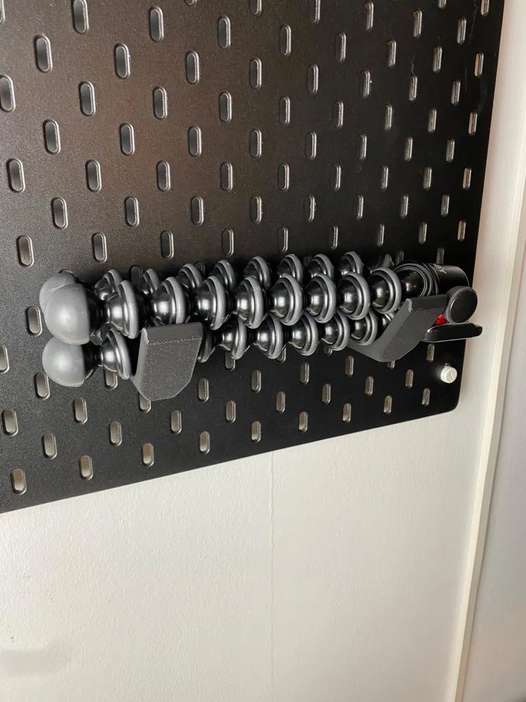 Cái kẹp này giúp bạn sắp xếp gọn gàng tripod Joby trên tấm pegboard Skadis của IKEA. Phù hợp cho ai thích độ chế đồ IKEA. In bằng PLA với hỗ trợ như trong hình là okela.