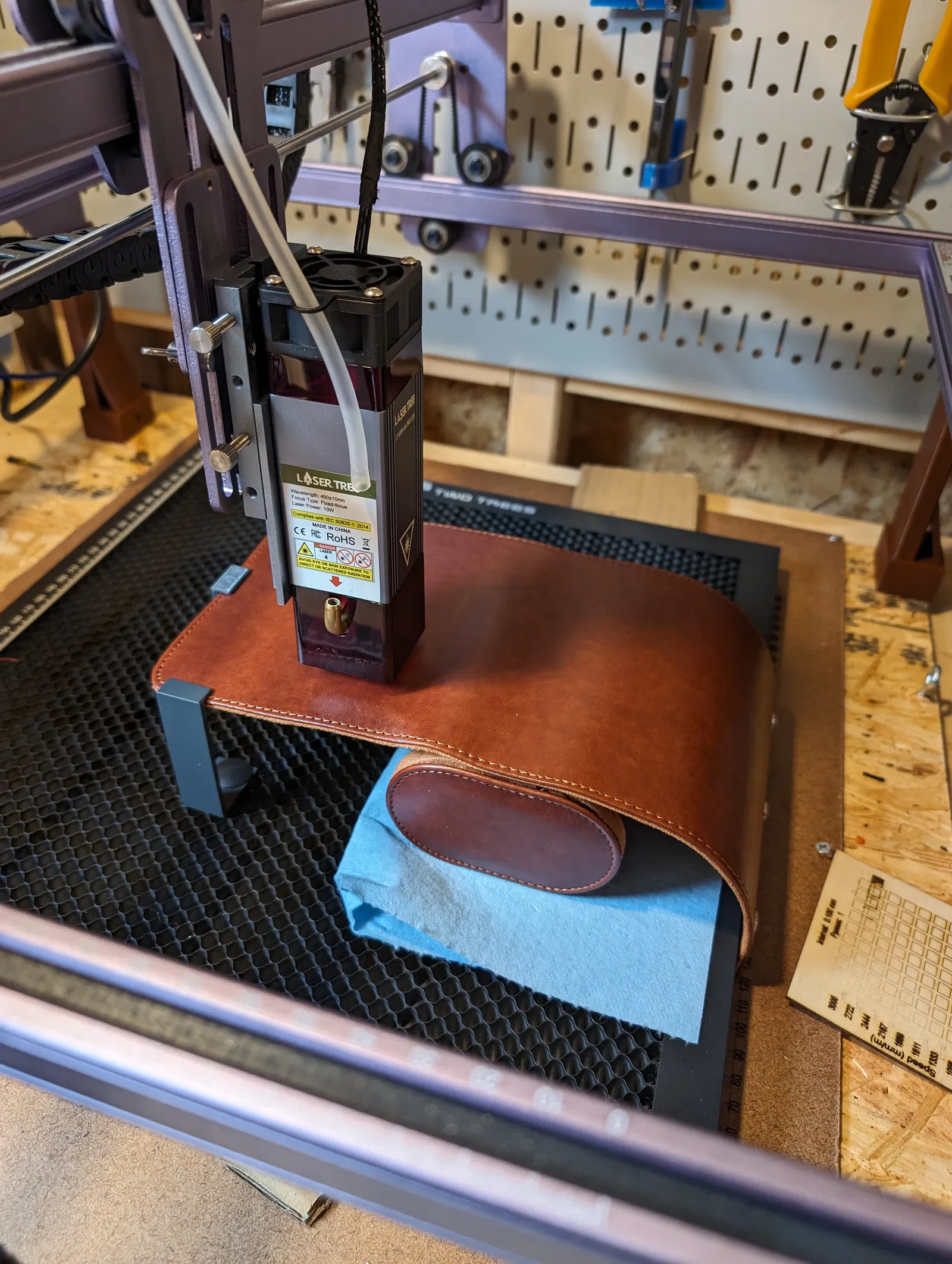 Cái jig này dùng để giữ nắp cuộn đồng hồ, loại rẻ tiền bán trên Temu/Aliexpress. Bạn có thể dùng bao nhiêu tùy thích để cố định cuộn. Jig gắn vào bàn laser bằng chốt qua lỗ trên jig. Nhớ in có hỗ trợ nhé.