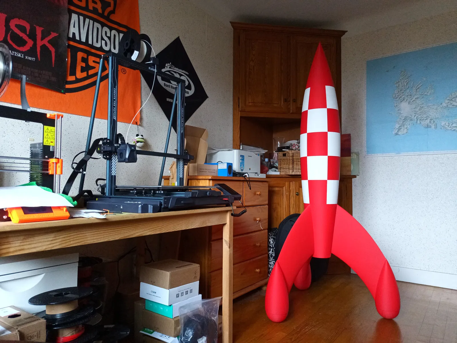 Mô hình tên lửa Mặt Trăng Khổng Lồ, lấy cảm hứng từ nhân vật truyện tranh nổi tiếng. Phiên bản này được thiết kế cho in 3D kích thước lớn, tự lắp ráp, không cần phụ kiện. Có thể in lên đến 1.8 mét!