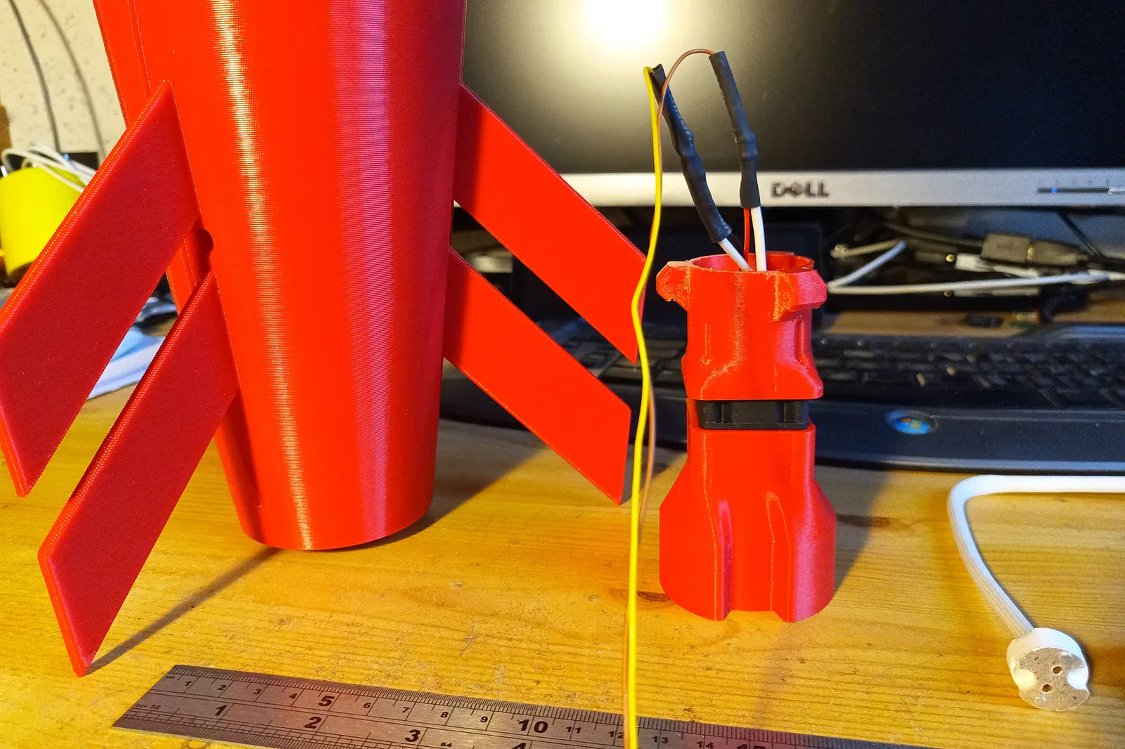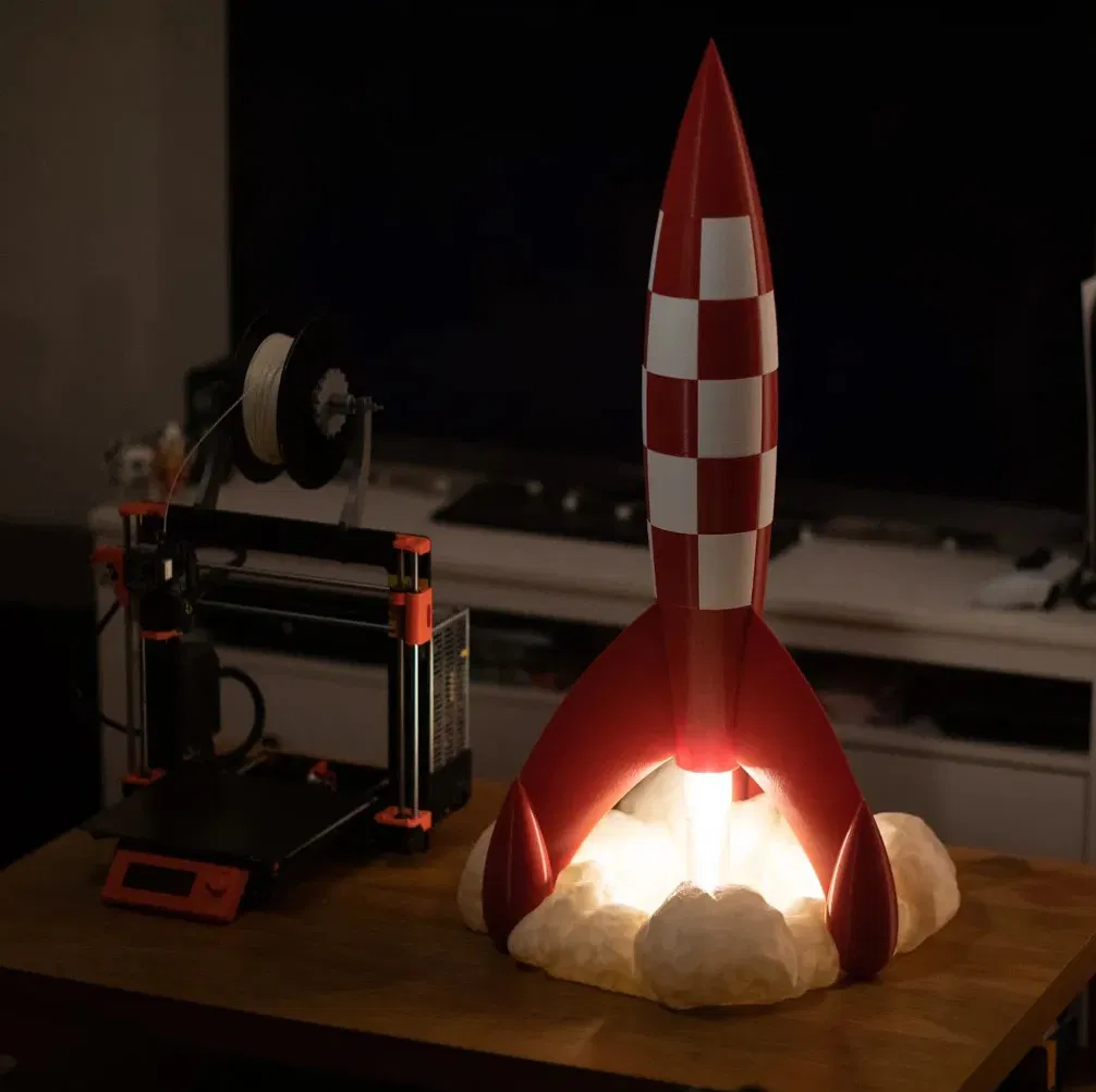 Mô hình Tên lửa Mặt Trăng Khổng Lồ GU4 phóng to 1500% với bóng đèn LED "trong động cơ". Phụ kiện này bao gồm cả quạt tản nhiệt cho bóng đèn.