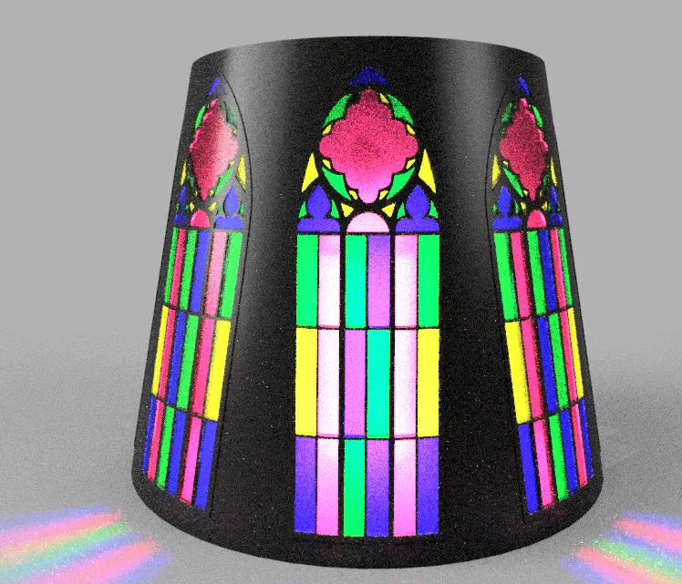 Mô hình chụp đèn kính Gothic này được thiết kế để thử nghiệm in đa vật liệu trên Prusa XL, sử dụng đầy đủ 5 đầu in. Hướng dẫn in chi tiết bằng PLA và sợi trong suốt hoặc không đổ đầy để đạt hiệu quả mong muốn. Lưu ý về các khoảng trống nhỏ có thể xảy ra do dây đai lỏng.