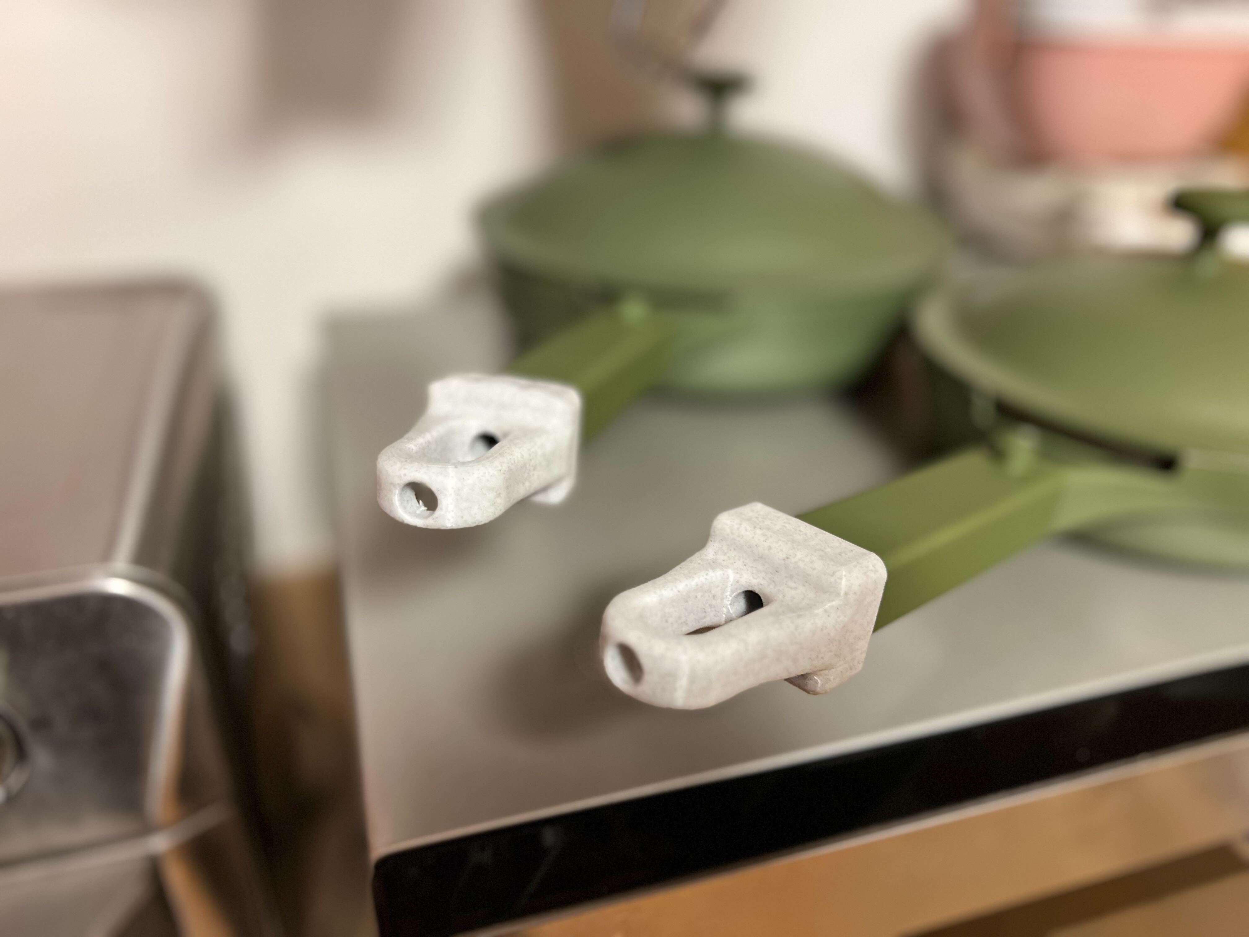 Đây là một phụ kiện tay cầm nhanh chóng mà tôi đã làm cho dòng chảo Always của OurPlace. Hầu hết các dòng chảo Always của họ được thiết kế để dùng trên bếp - không dùng trong lò nướng vì tay cầm được làm bằng vật liệu riêng biệt. Với một chiếc lục giác chìm 4mm dài, bạn có thể dễ dàng tháo tay cầm ra, gắn phụ kiện móc này vào, luồn lại ốc vít qua phía trên và siết nhẹ để cố định. Trong hình là cả Chảo Mini Always và Chảo Standard Always. Kích thước đều vừa cho cả hai loại với phiên bản v1 và v1 kéo dài có độ 'khít' hơn một chút. Phiên bản v2 có nhiều biến thể rãnh hơn để cầm nắm thoải mái hơn khi nấu, trong khi v1 có cạnh sắc.