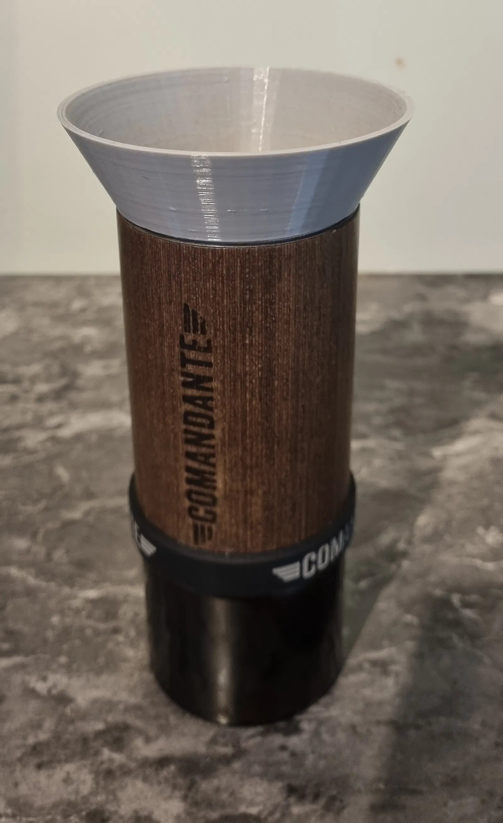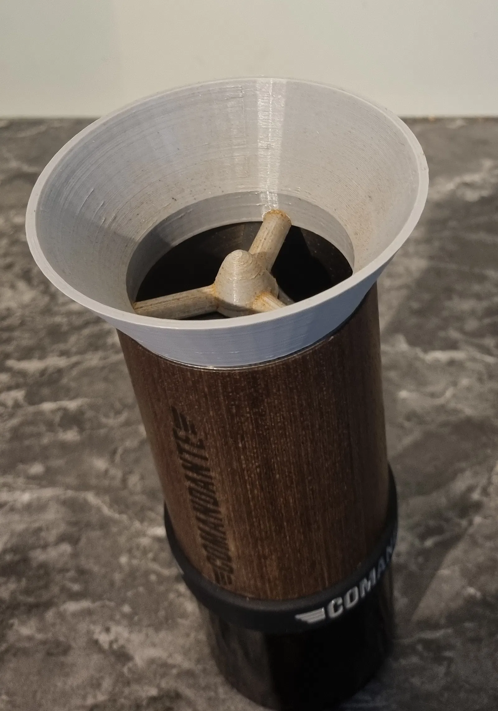 Chỉnh sửa nhanh và đơn giản của "Comandante Grinder Funnel with Shaft Cover" với khe xung quanh trục được làm rộng hơn.