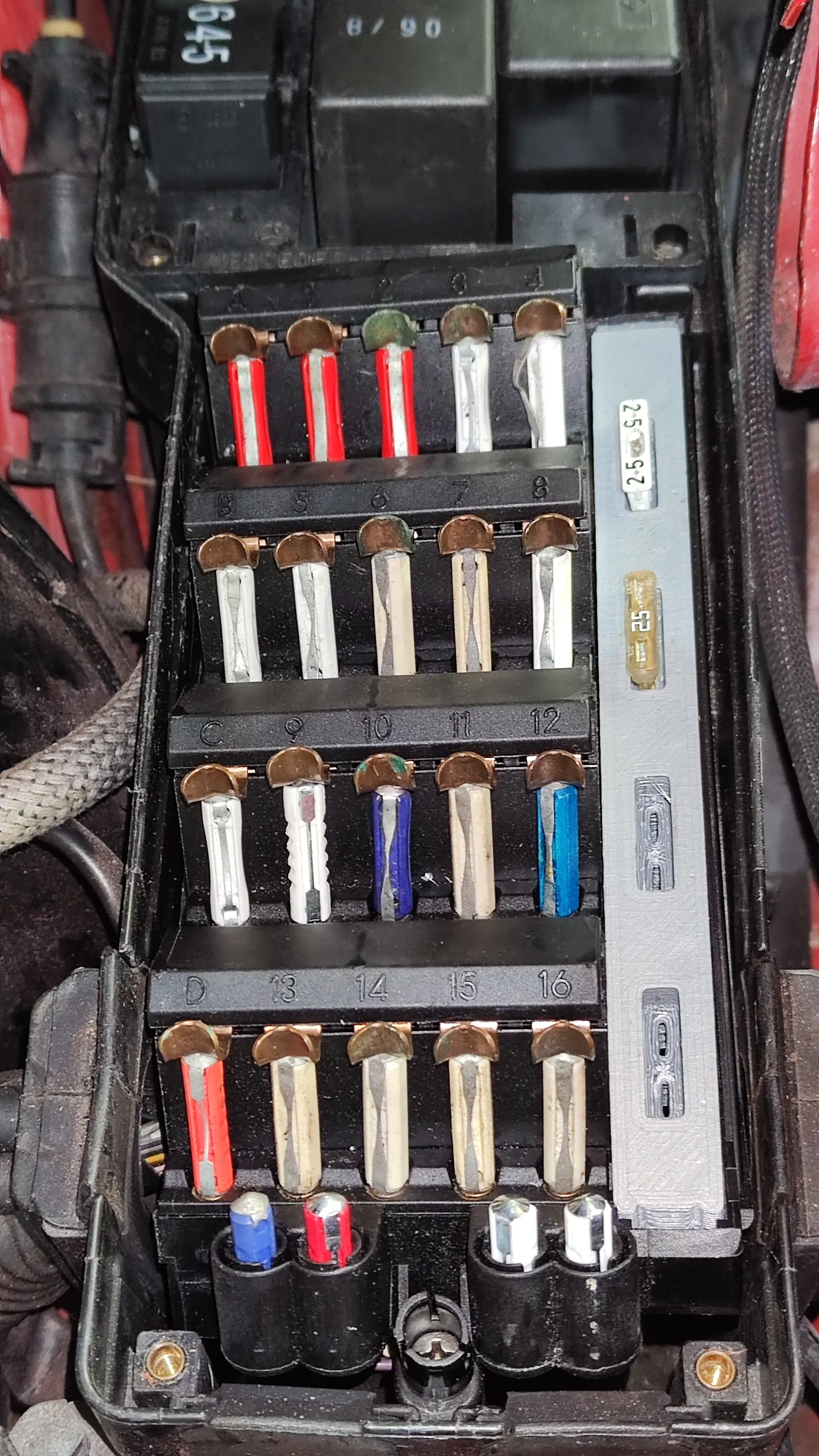 Đối với những xe không có cầu chì cho cầu chì EFGH, bộ phận này sẽ vừa với không gian nguyên bản. Sử dụng cầu chì kiểu lưỡi hiện đại, vừa với Faston 6,3mm loại âm (có chốt giữ phía sau), bạn có thể kết nối các thiết bị bổ sung.