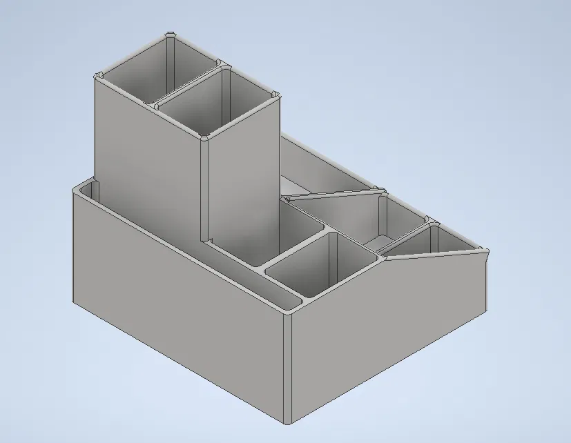 Organizer để bàn hữu ích, kích thước 102.5mm x 110mm x 92mm, có thể tùy chỉnh kích thước. In với 15% infill, không cần support. Lưu trữ đồ dùng trên bàn làm việc một cách gọn gàng và tiện lợi.
