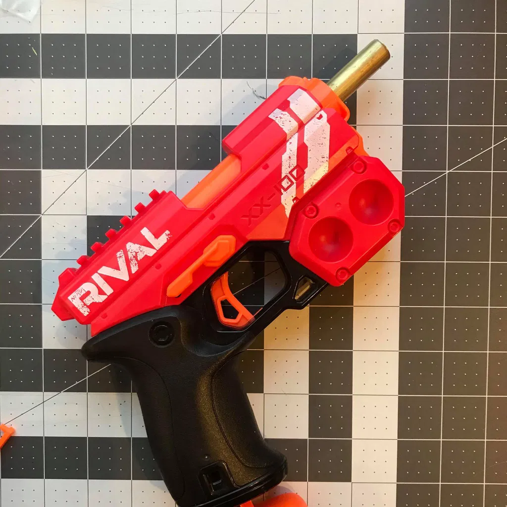 Cập nhật 16/12: Tăng chiều dài ống nòng và gắn thêm phụ kiện Nstrike. Thiết kế này giúp mod súng Knockout dễ hơn. Cài đặt in: Máy Prusa I3 MK3S, không Rafts, không Supports, Infill 10%, nhựa Prusament PLA.