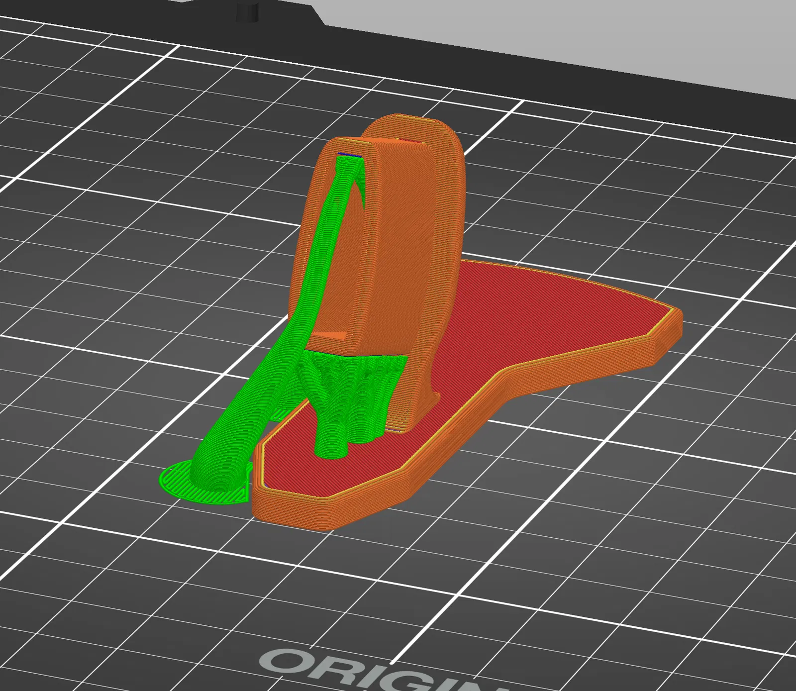 In bằng PLA với hỗ trợ dạng organic. Phần PLA hơi nhẹ nên cần cố định trong nhà tắm. Tôi đã giải quyết bằng băng dính hai mặt.