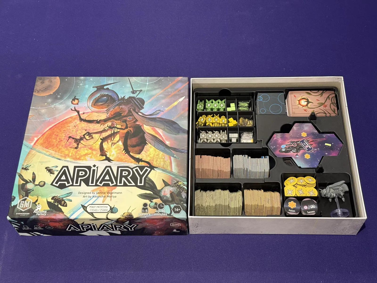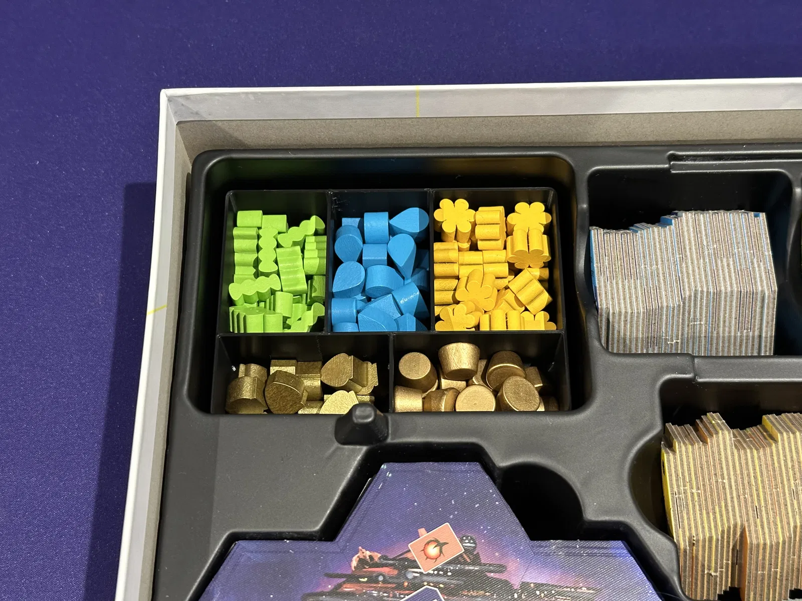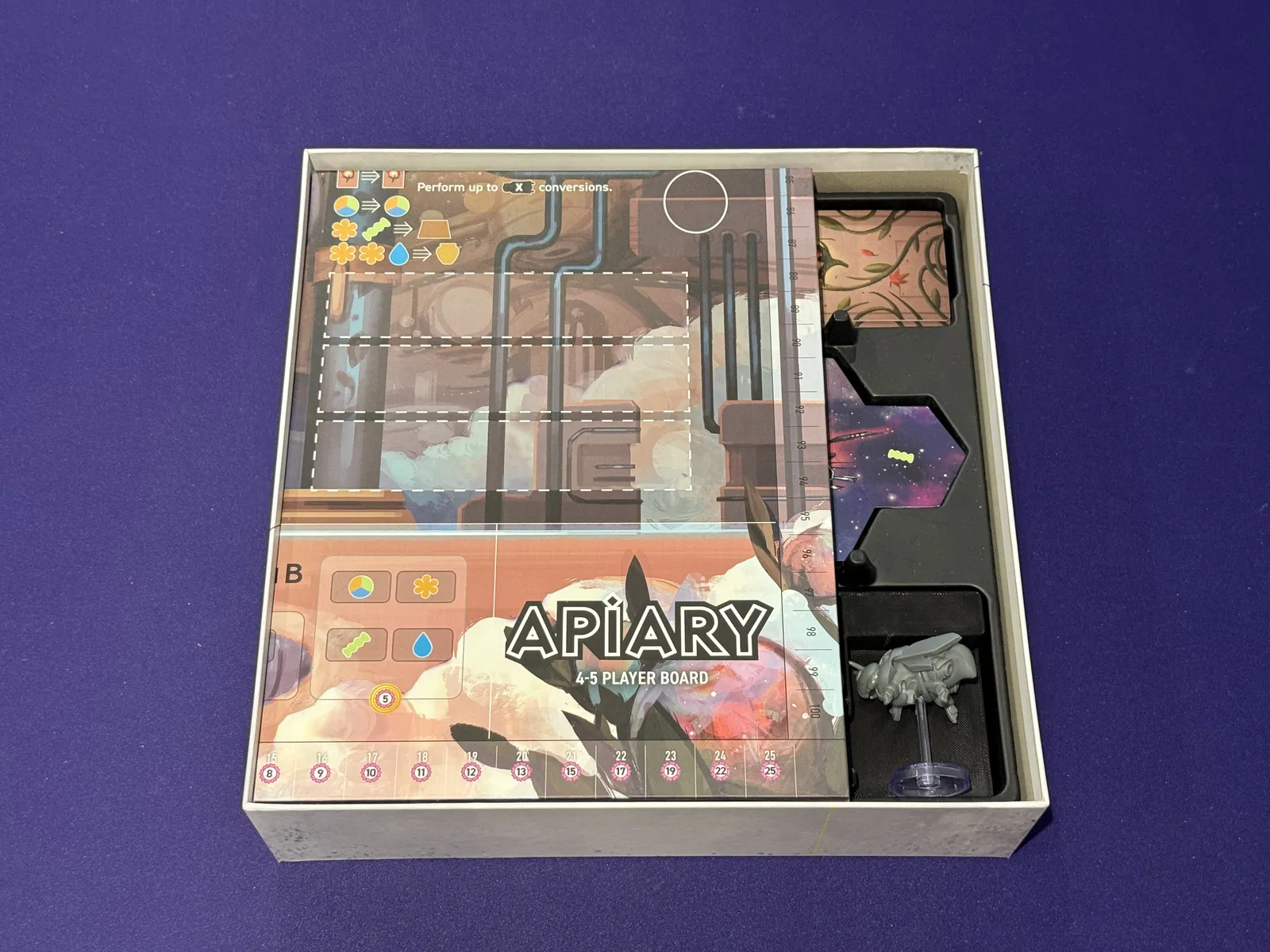 Lưu ý là để khớp những bộ phận này vào insert gốc, tôi đã thay đổi chỗ lưu trữ các bộ phận: các tài nguyên, token explore và token dance giờ được lưu trữ ở khe cắt nhỏ hơn, và các vật phẩm của người chơi (ong, khối vuông, và token ngủ đông) giờ được lưu trữ ở chỗ khay tài nguyên gốc.