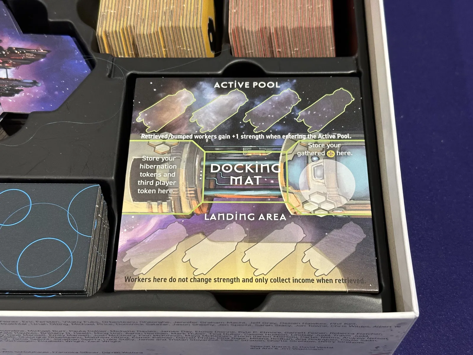 Mỗi khay riêng của từng màu người chơi được lưu trữ trong một khay riêng, xếp chồng dưới các tấm docking mat. Hai khay người chơi xếp chồng theo chiều dọc có cùng chiều cao với khay tài nguyên gốc, vì vậy các tấm docking mat vẫn sẽ khớp phẳng trên cùng. Nên xoay hai khay trên cùng vuông góc với ba khay dưới cùng, như vậy chúng sẽ ít bị rung lắc trong hộp hơn.