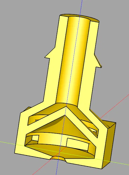 Thiết kế này sử dụng hai bề mặt hình nón để tạo ra các thể tích bên trong, nhưng không cần sử dụng bộ phận hỗ trợ bên trong. Đầu phun hoạt động tốt đáng ngạc nhiên (ít nhất là trên máy MK3S+ tiêu chuẩn của tôi).