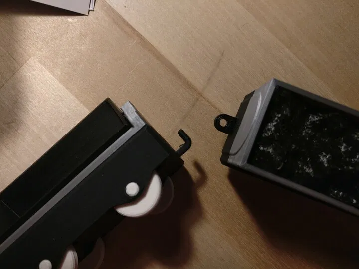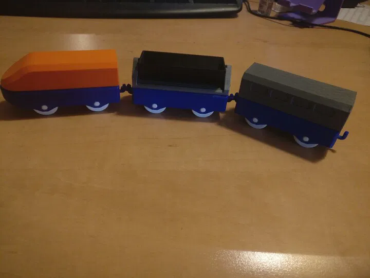 Cập nhật ngày 30-03-2024: Sau khi thấy nhiều bộ phận nối của toa tàu bị gãy, rõ ràng là hệ thống này quá mong manh, đặc biệt là đối với trẻ nhỏ. Vì vậy, tôi đã phát hành phiên bản V2 cho thân xe (đầu máy và toa xe). Nó sử dụng một hệ thống móc nối đơn giản và chắc chắn hơn.