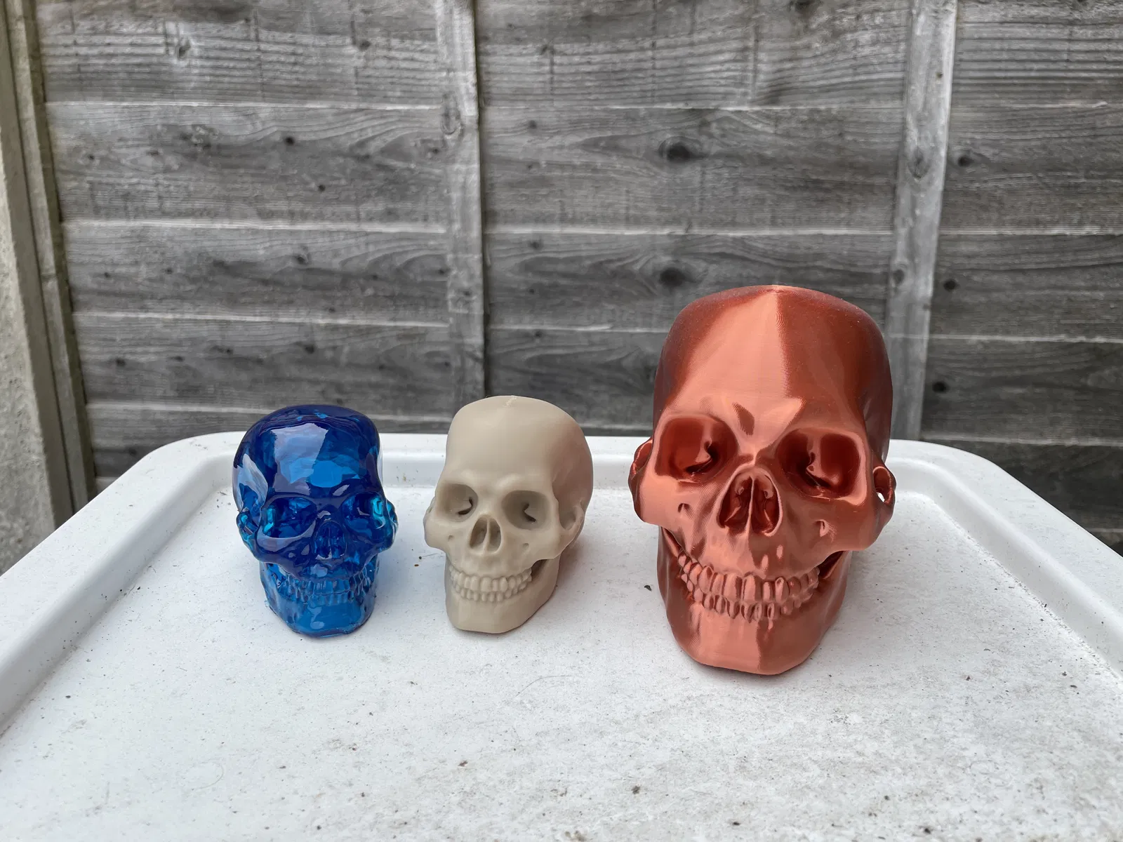 In bằng nhựa Resin: sẽ cần supports và tốt nhất là in rỗng và nghiêng về phía sau. Có thể đặt một lỗ thoát ở mặt dưới của hộp sọ.