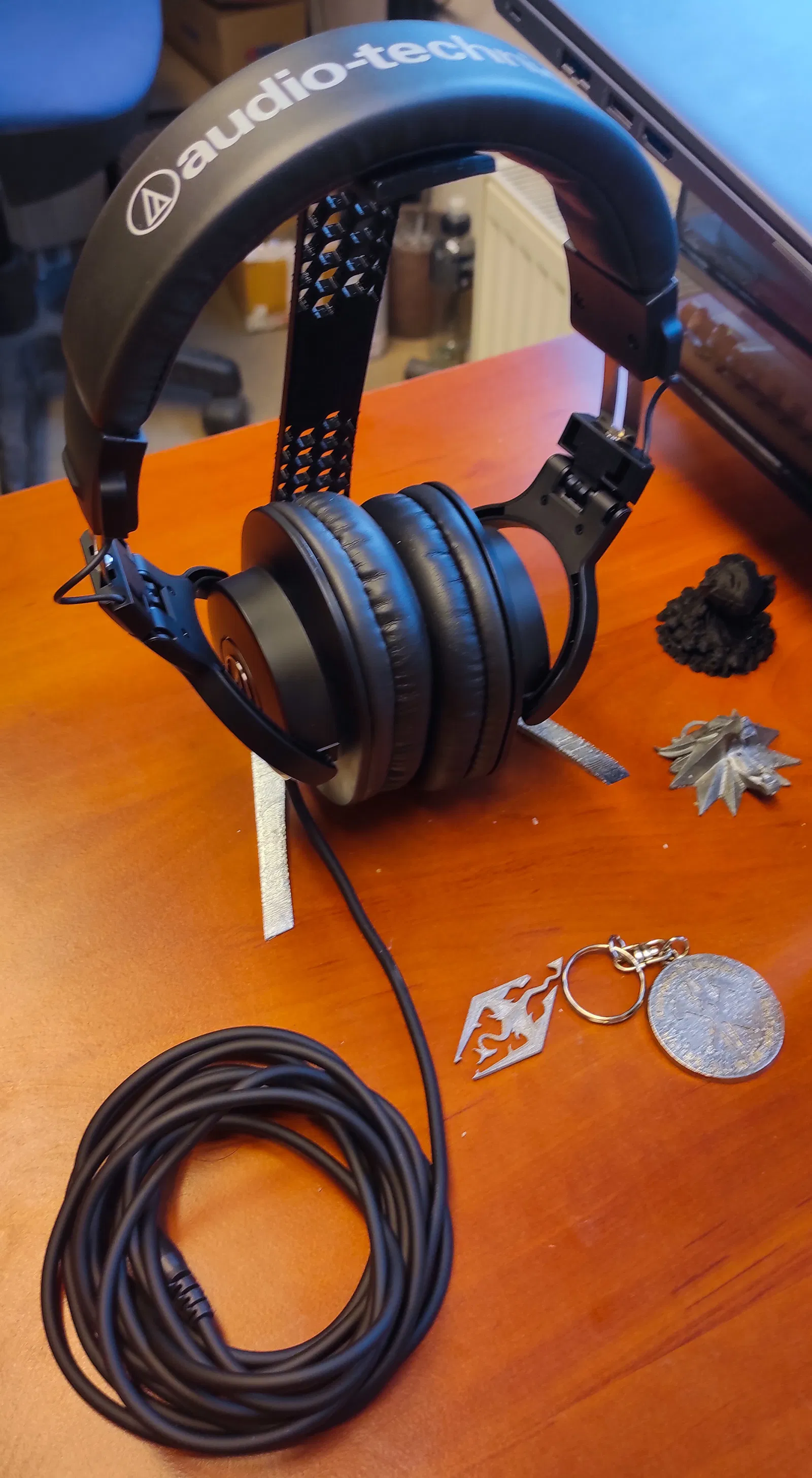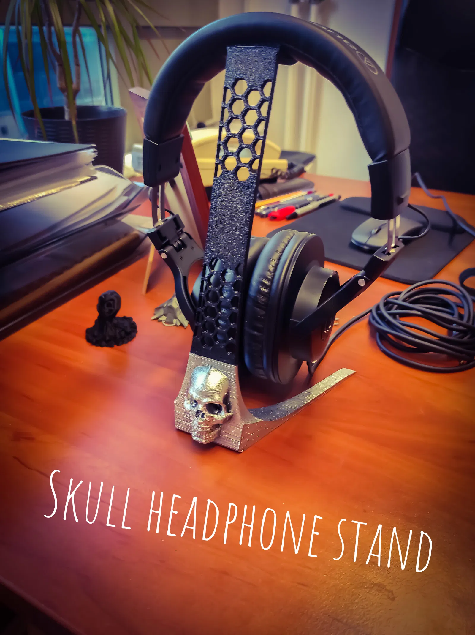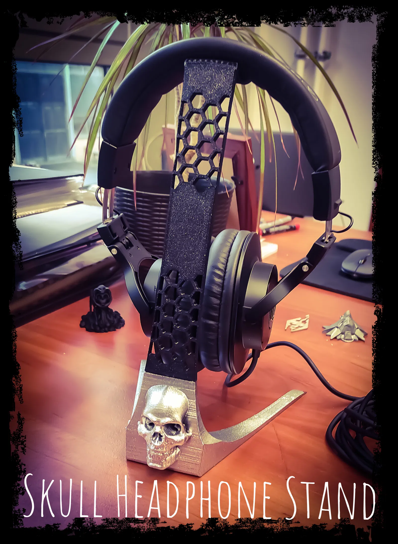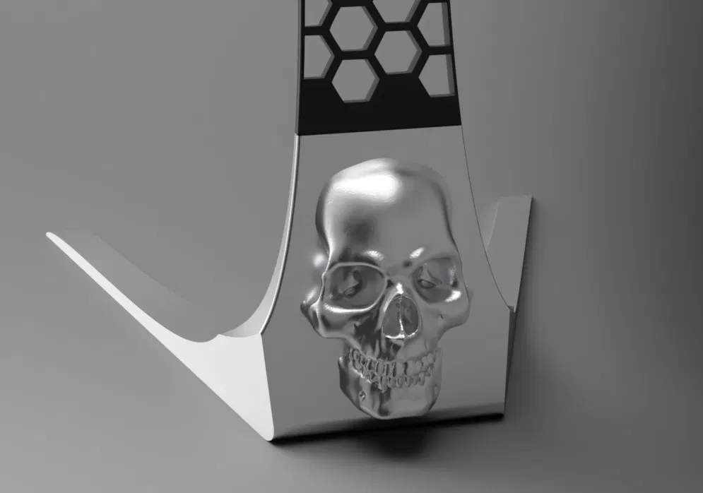 Giá đỡ tai nghe dễ in và dễ lắp ráp, có họa tiết hộp sọ độc đáo. Mô hình gồm hai phần, dễ dàng kết nối bằng khớp lưỡi gà. Sơn màu tùy thích hoặc in với màu PLA. Hỗ trợ in cho các chi tiết phức tạp. Có thể tùy chỉnh kích thước cho phù hợp với tai nghe lớn hơn.