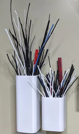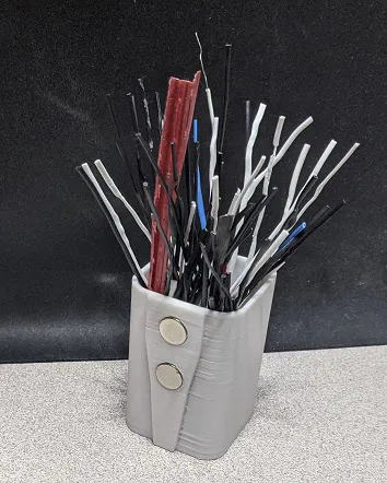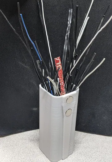 Mấy cái hộp nhỏ xinh để gắn lên tủ hồ sơ, đựng dây rút, kẹp giấy và mấy thứ linh tinh. Có các phiên bản với kích thước khác nhau, chỉ cần kéo dãn phần thân giữa là được. Sử dụng nam châm 10mm x 3mm.