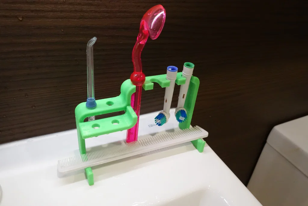 Sau khi tìm kiếm xung quanh trong Thingiverse cho một người giữ Waterpik, tôi thấy rằng hầu hết các thiết kế có nghĩa là được gắn trên tường và không có nhiều người đứng miễn phí. Cuối cùng tôi đã thiết kế một cái cho chính mình. Tôi muốn một cái gì đó có thể giữ các mẹo về Waterpik và miệng-B của tôi cũng như một số không gian bổ sung để làm sạch lưỡi và lược. Thiết kế phải ổn định (không dễ dàng gõ cửa ngay cả khi được lấp đầy) và các bộ phận nên giữ nguyên vị trí.