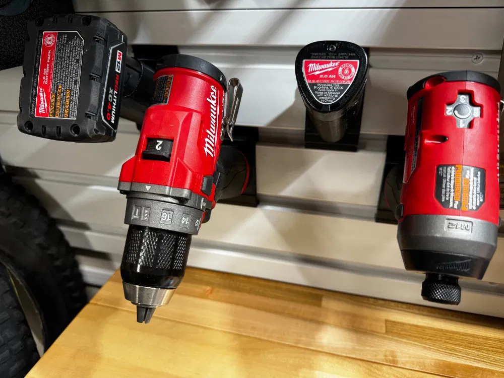 Gắn các công cụ Milwaukee M12 vào các bản nhạc 'Gearwall' hoặc 'GealTrack' của Gladiator.