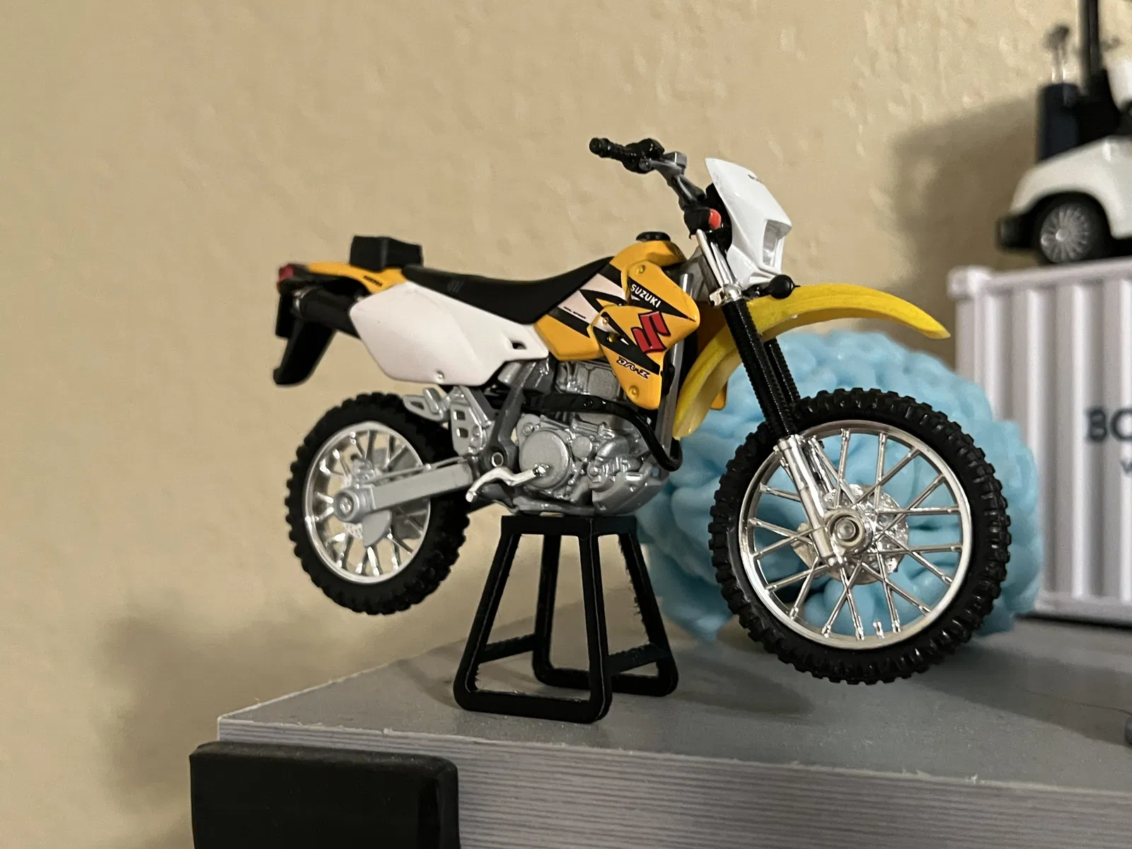 Chân đế giữa cho xe mô tô đồ chơi. Có thể in úp hoặc ngửa, với hai tùy chọn chiều cao 26mm và 20mm để phù hợp với nhiều tỉ lệ khác nhau. Lưu ý: mô hình này chỉ để trưng bày, không dùng để chơi đùa vì các chân khá mỏng và dễ gãy.