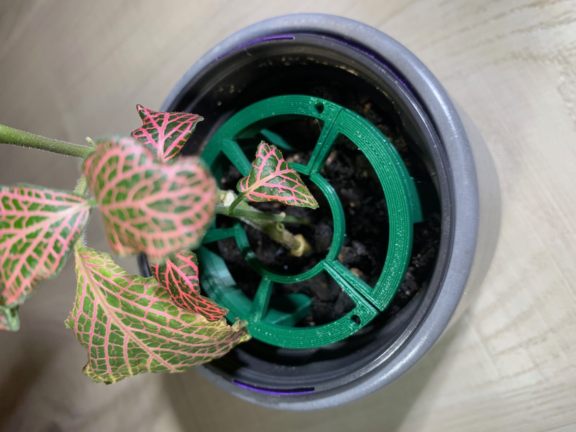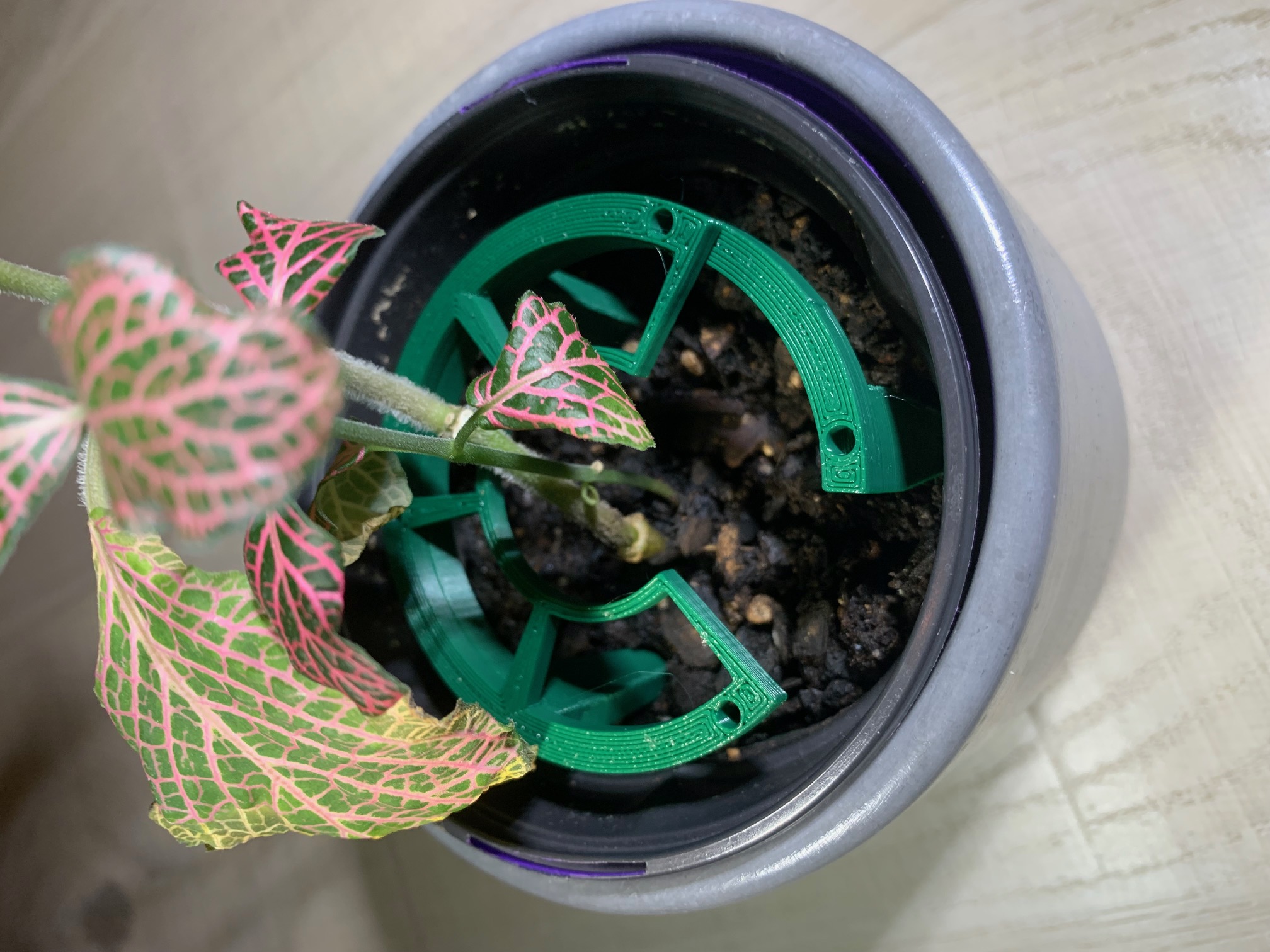 Căn chỉnh chậu cây của bạn vào trong bộ "Plant Stacks!" với các vòng có đường kính khác nhau. Chuyển đổi đường kính ngoài 60mm thành 15mm hoặc 30mm. In úp mặt phẳng xuống, chốt hướng lên.