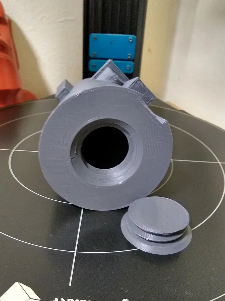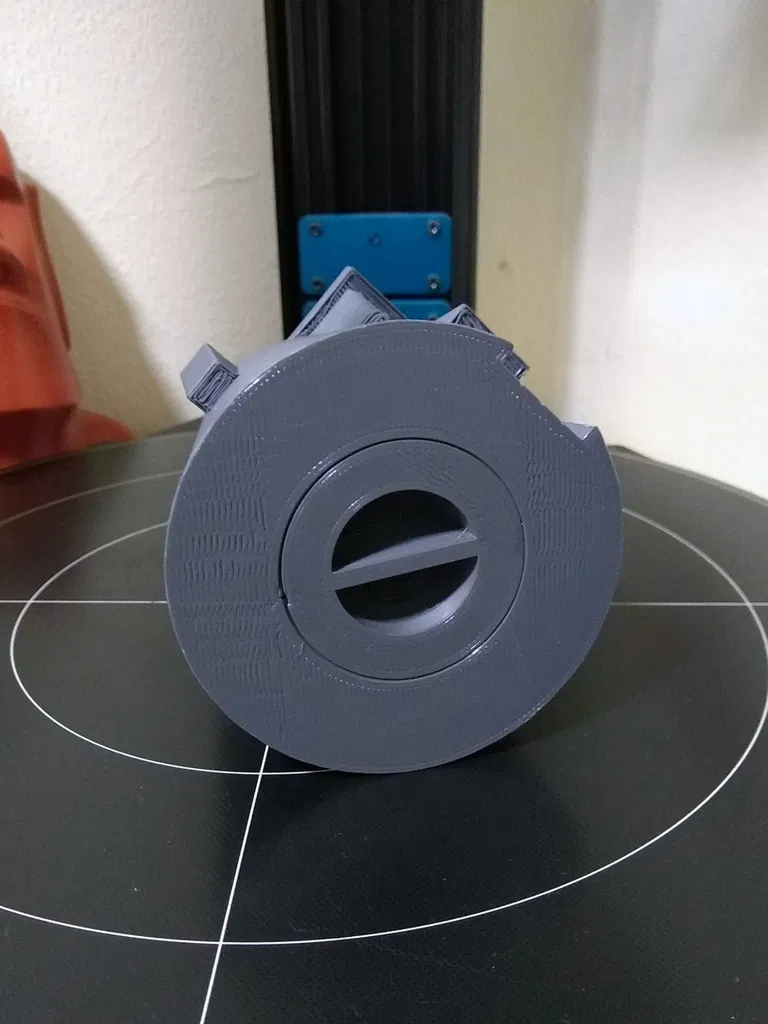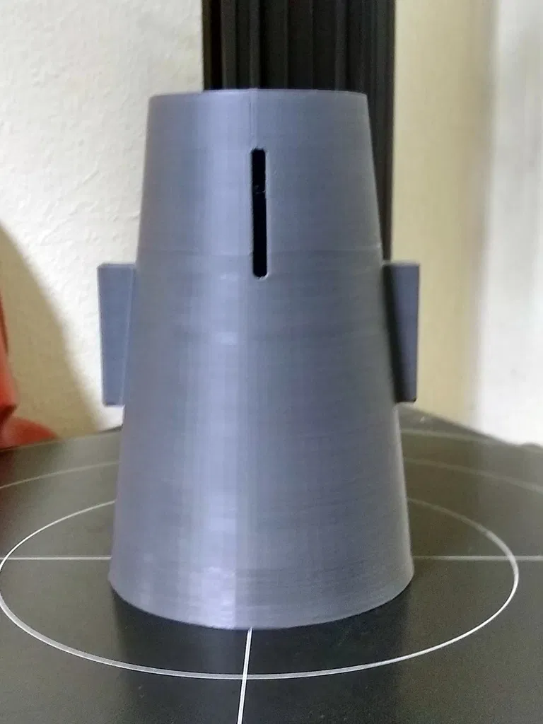 Heo đất được làm lớn hơn một chút (150 mm), khoét rỗng bên trong (vách 2.4 mm), có khe đựng xu (35x3.5) và một lỗ ren (/3d-model/chan-lo-co-nap-dung-cho-thiet-ke-cua-rieng-ban) ở đáy được thêm vào.