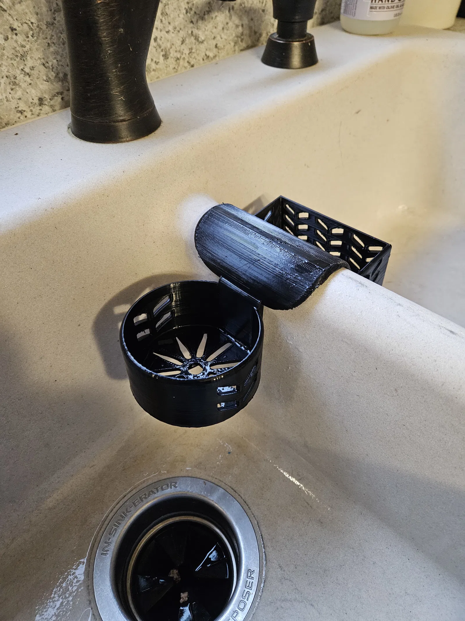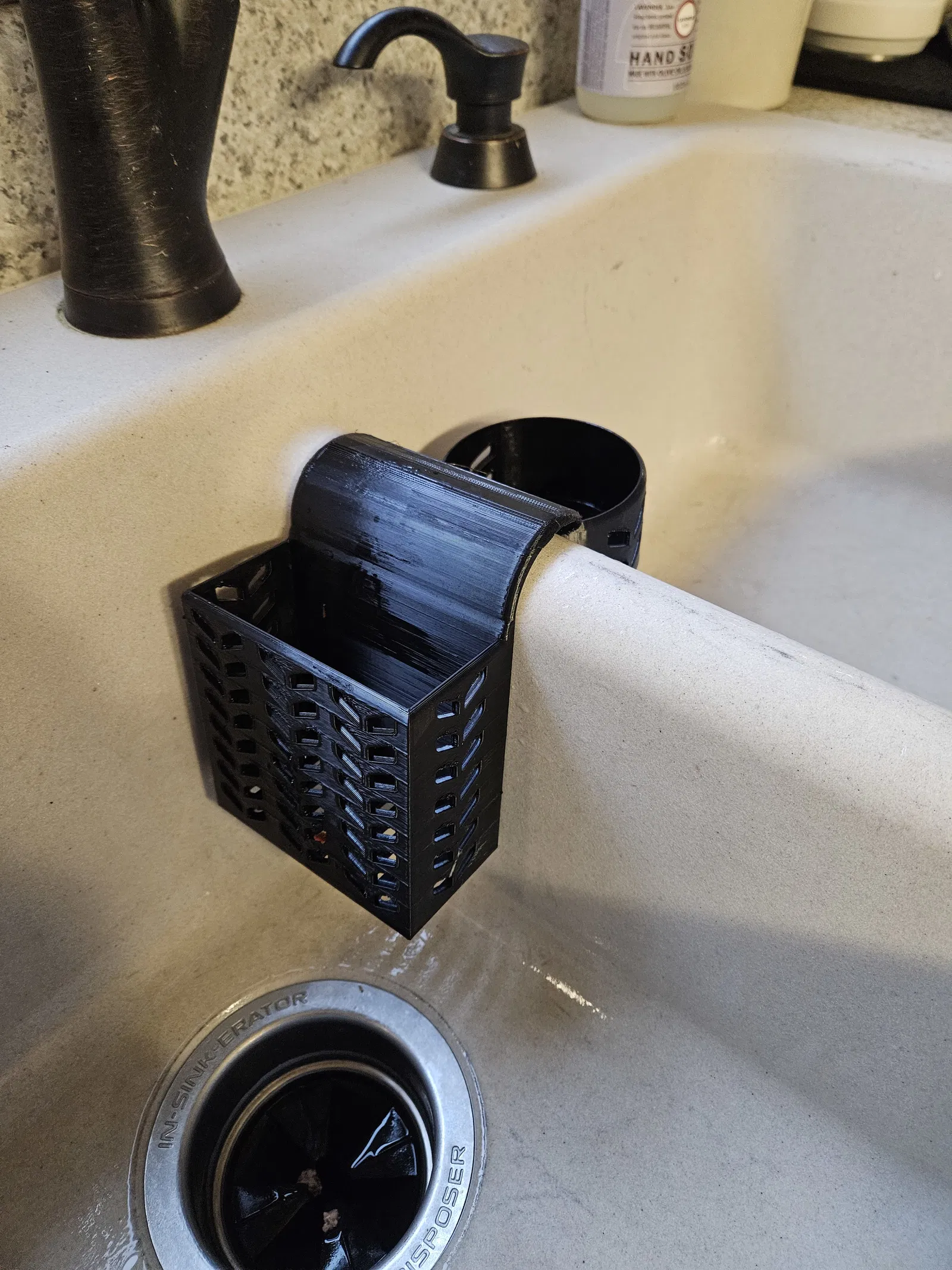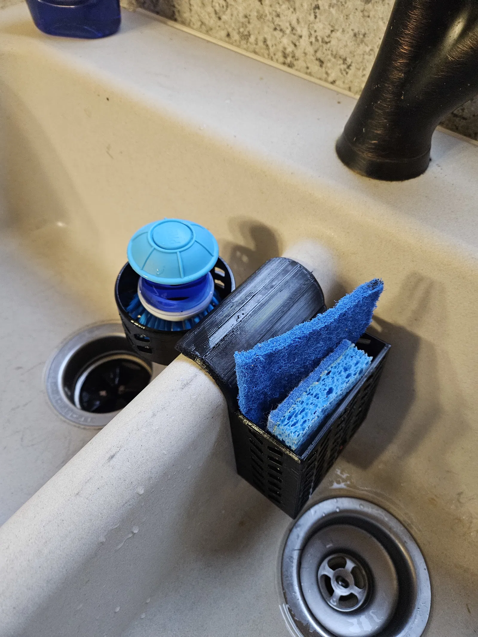 Để được cả bàn chải và miếng rửa chén. Thiết kế gọn gàng giúp nước thoát ra và vật dụng khô ráo. Đặt vừa vặn trên vách ngăn giữa bồn rửa chén. Nên dùng PETG, nước nhà tui nóng lắm nên không chắc PLA có chịu nổi không. Tui có dùng support để giữ mọi thứ. Tui thử cắt nó ra thành nhiều mảnh với các kiểu kết nối khác nhau nhưng không cái nào giữ được nên tui in nó luôn liền mạch.