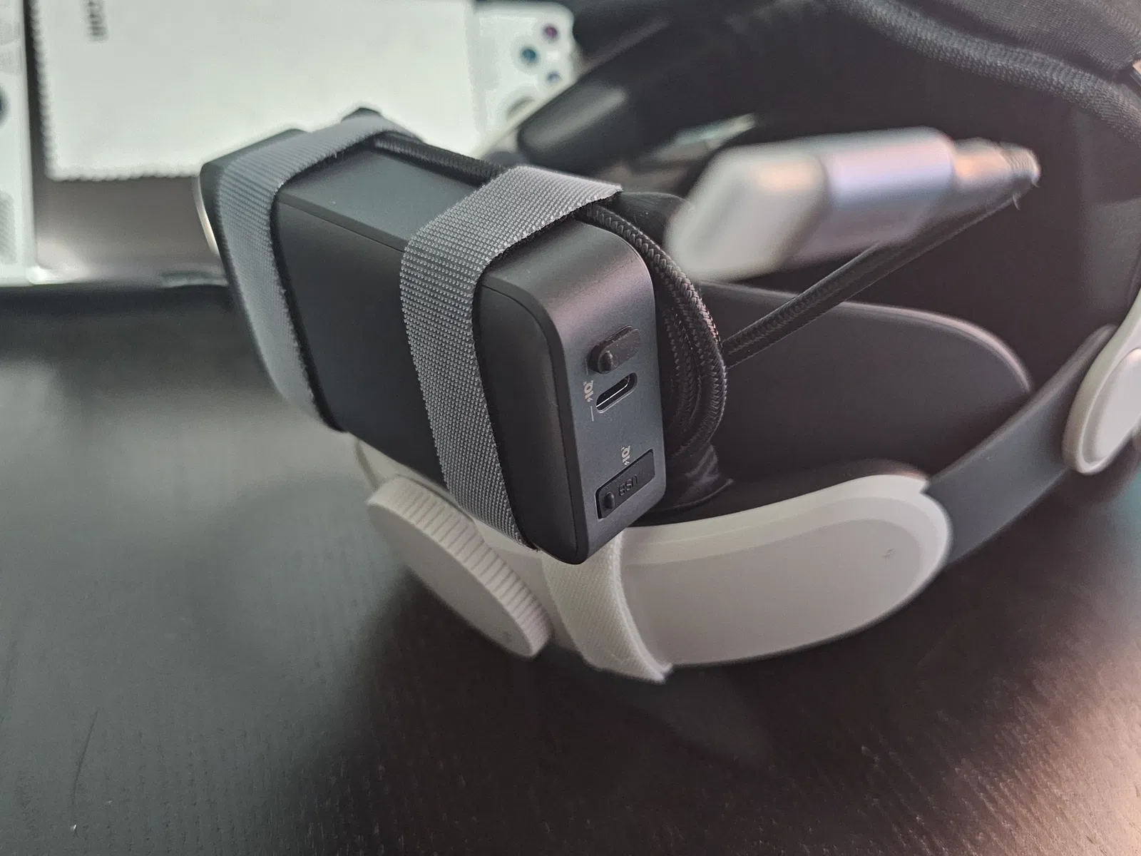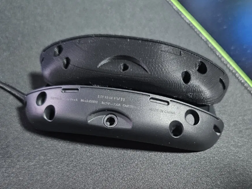Một đế pin thay thế được lắp đầy đủ cho BOBOVR M3 (và các loại dây đeo tương tự sử dụng cùng đế pin) với một mặt sau để gắn dây velcro cho bất kỳ sạc dự phòng nào có kích thước/trọng lượng tương đối.