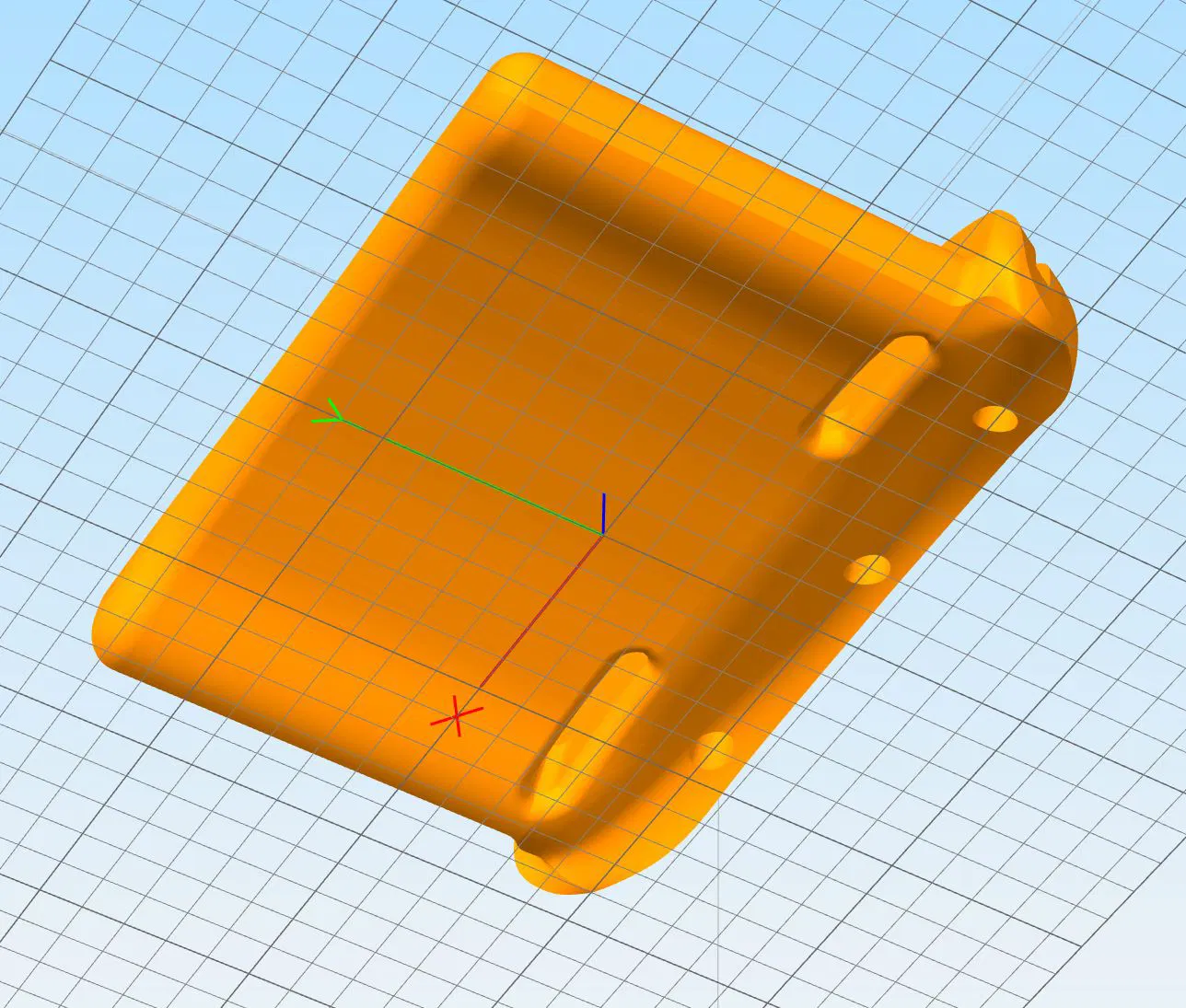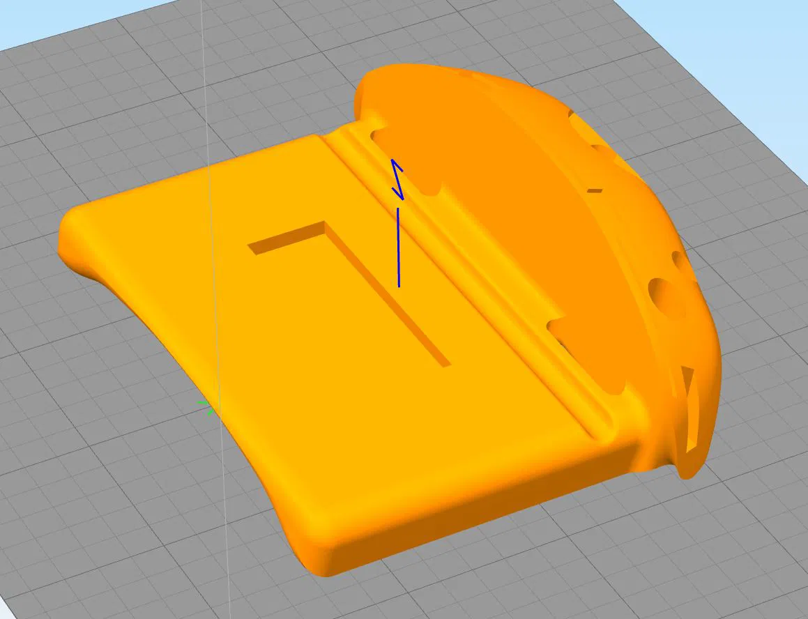 Sử dụng tệp "Oriented" để in trực tiếp nếu bạn không muốn chỉnh sửa gì. Nếu bạn muốn chỉnh sửa và in sau, hãy sử dụng tệp còn lại và in nằm phẳng như trong hình ảnh. Góc nghiêng của bề mặt phẳng của đế so với mặt sau là 12,14 độ. Sau khi nhập, xoay mô hình theo các khoảng 90 độ, sau đó dịch chuyển một trong các trục đi 12,14 độ để đặt nó nằm phẳng trên bàn in.