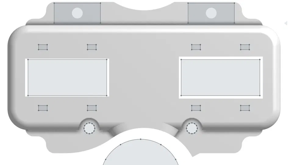 Phần của Crispy001 được nhập vào Onshape, đặt chồng lên bản vẽ DXF chính thức của khung máy Printrbot Plus v1, và được điều chỉnh cho khớp.