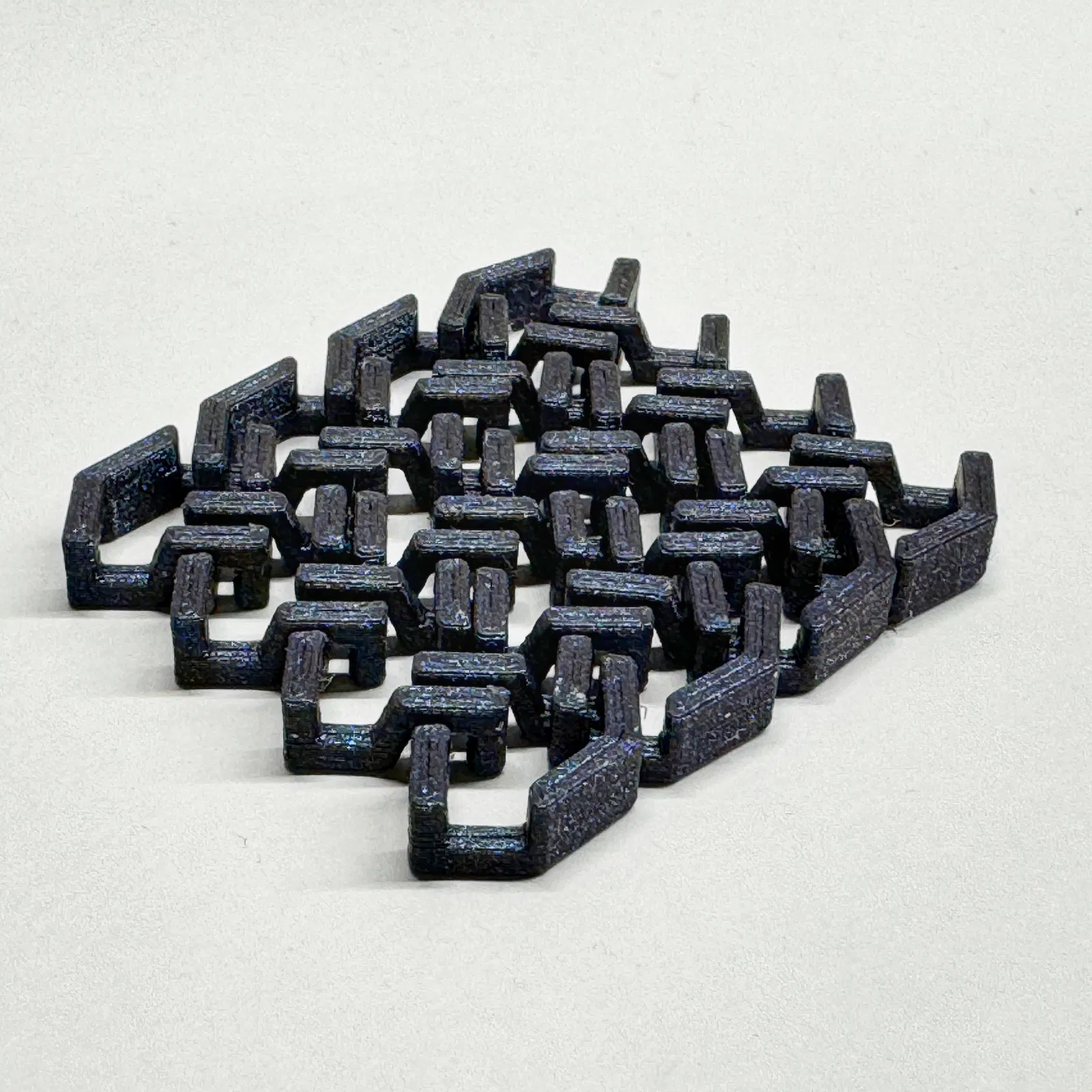 Cái này cũng dựa trên hình vuông, kiểu chainmail này có các cầu nối cực ngắn và in ra dễ dàng, không cần dọn dẹp gì cả (có thể có một chút khi in bằng PETG).