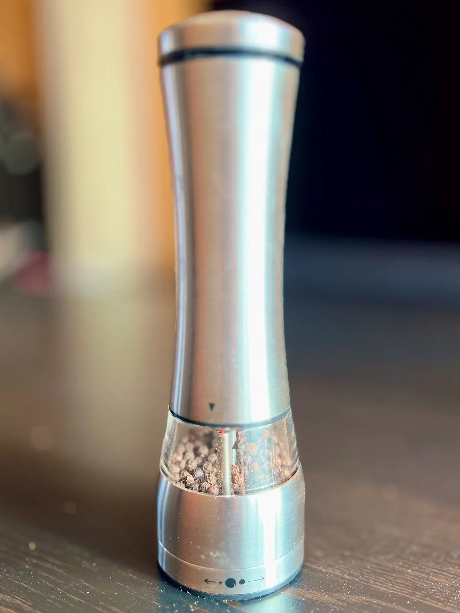 Cái cối xay tiêu điện này xài ngon lắm, mà nó ăn hết veo 6 cục pin (ghi là 4 cục AAA trên nhãn :) ) lẹ như chớp, với lại mô-tơ yếu xìu do điện áp pin tụt mau. Tôi gặp xui cái là để mấy cục pin gần hết (ví dụ Duracell bị chảy nước:/ ) trong cối xay, rồi nó chảy nước vô trong luôn.