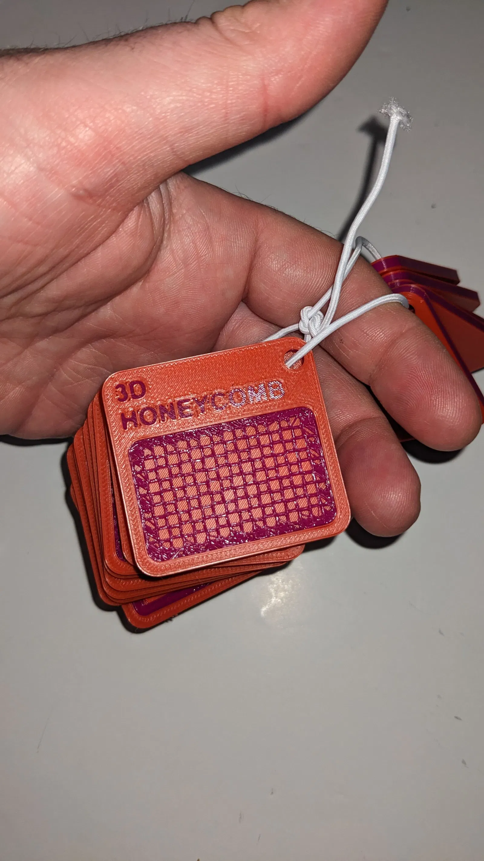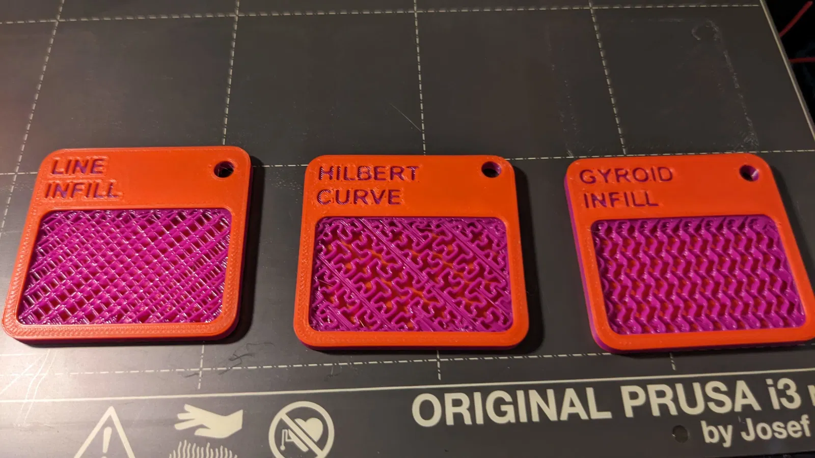 Móc khóa Mẫu Infill, in 3 màu. Tận dụng mấy vụn nhựa còn thừa để làm móc khóa. Công cụ hay ho giúp bạn chọn vật liệu cho mô hình hoặc làm mẫu thử bản in.