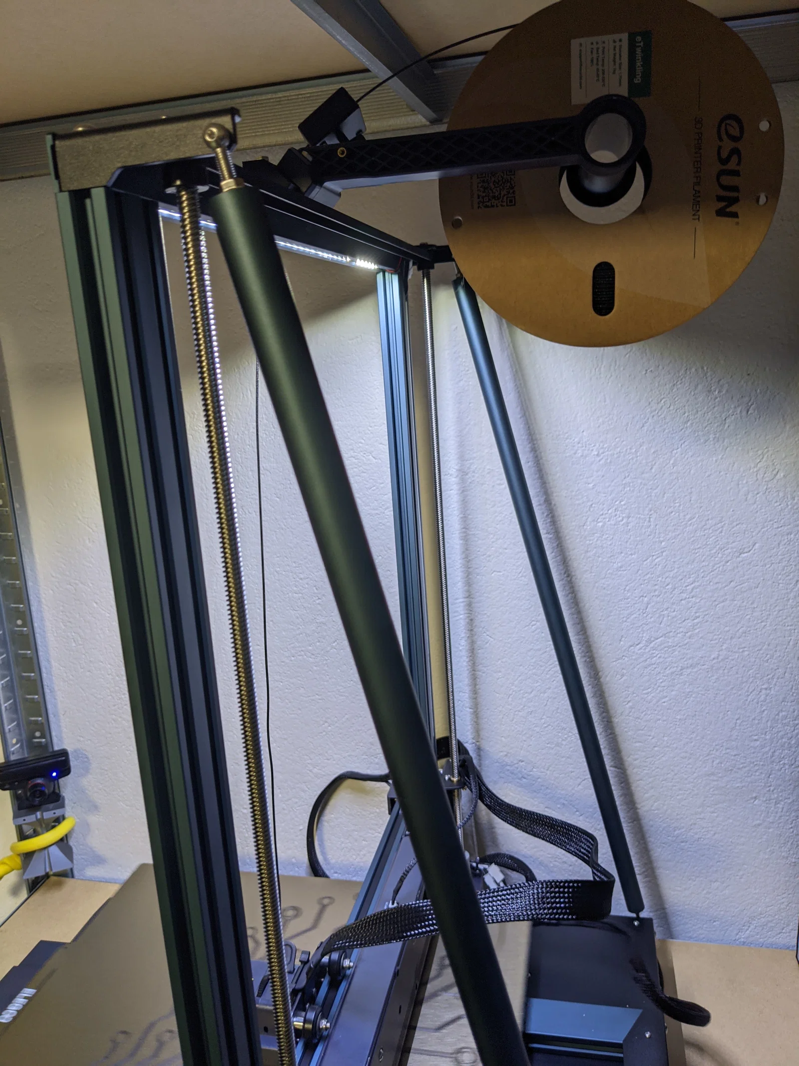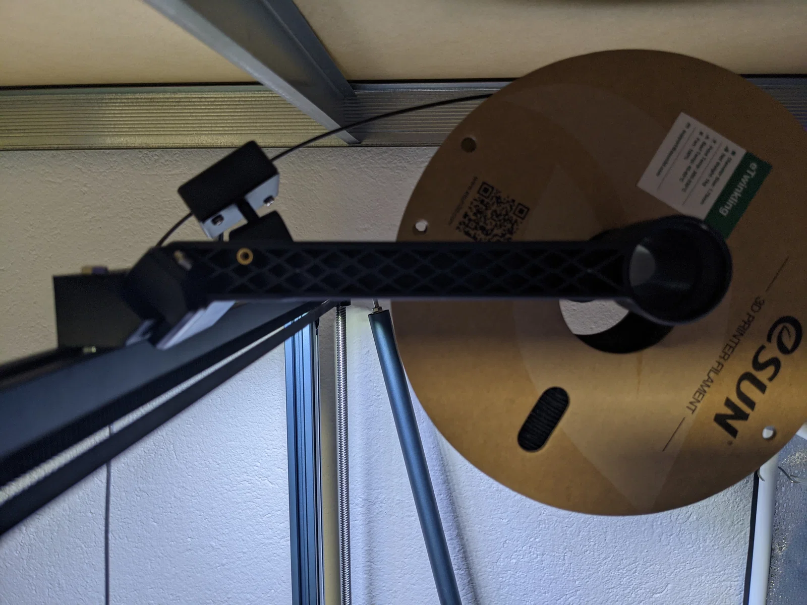Bộ chuyển đổi nhỏ gọn giúp bạn gắn giá đỡ cuộn dây theo chiều ngang trên máy in 3D Elegoo Neptune 4 Max. Lưu ý cẩn thận để trục X không bị va chạm với cuộn dây khi in.