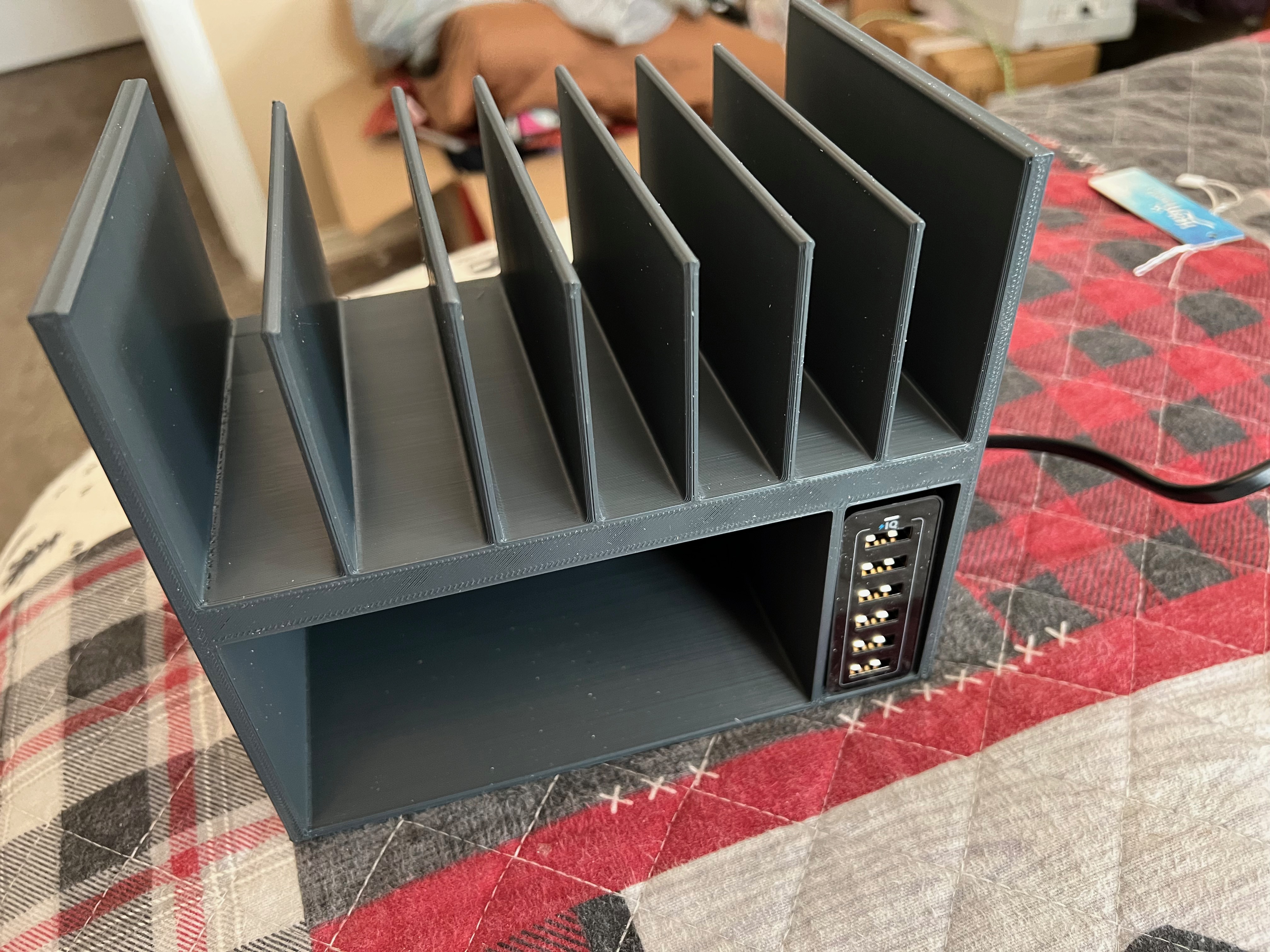 Đây là bản thiết kế lại của jmlee3k's Tablet Charging Station. In trên máy Ender3Pro Đầu phun .04 mm Chiều cao lớp cắt .28 IIIdMax PLA+ màu Space Grey và Night Grey.