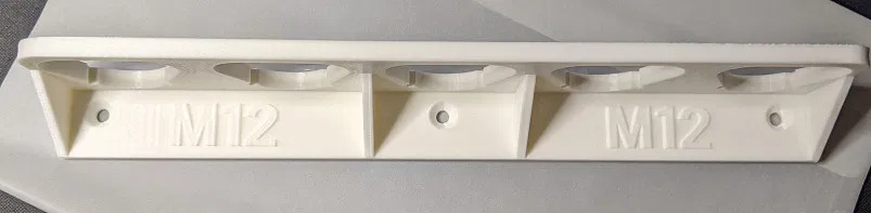 Tái chế cho bộ lưu trữ pin Milwaukee M12 12V 16Wh. Phiên bản lớn hơn cho 5 cục, gắn tường, có cả các phiên bản cho 4, 3, 2, 1 cục. Kích thước cho 5 cục là 266mm x 52mm. Đã cập nhật thêm phiên bản 4 cục (212mm x 52mm) và có nhãn.